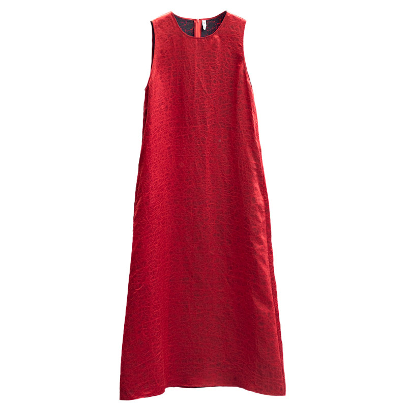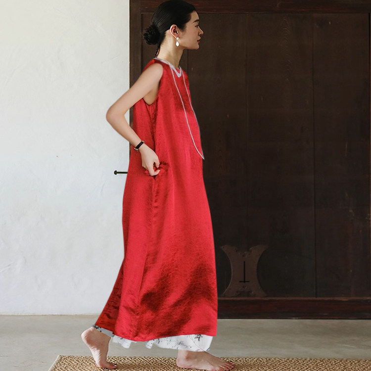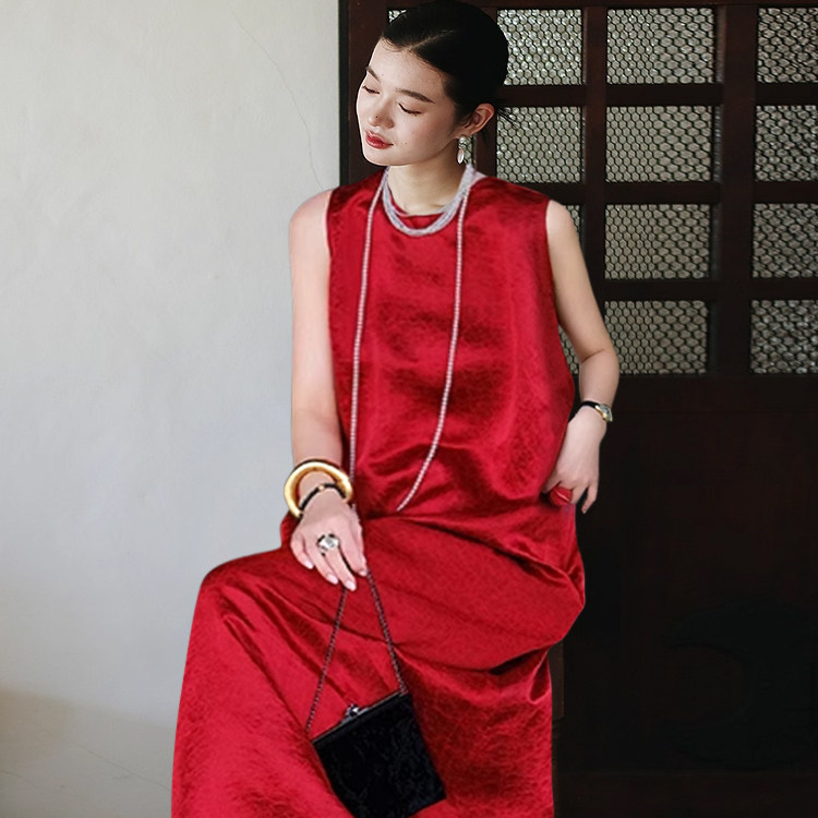 知笔墨2025夏100%桑蚕丝龟裂纹缎面香云纱文艺休闲清凉无袖连衣裙