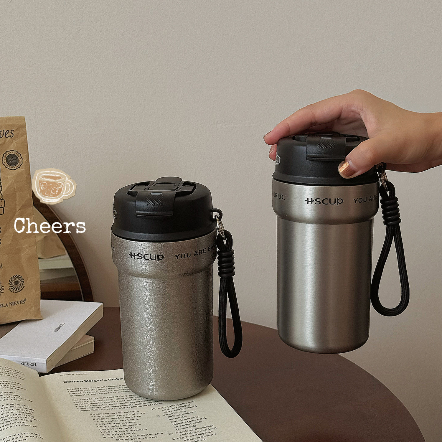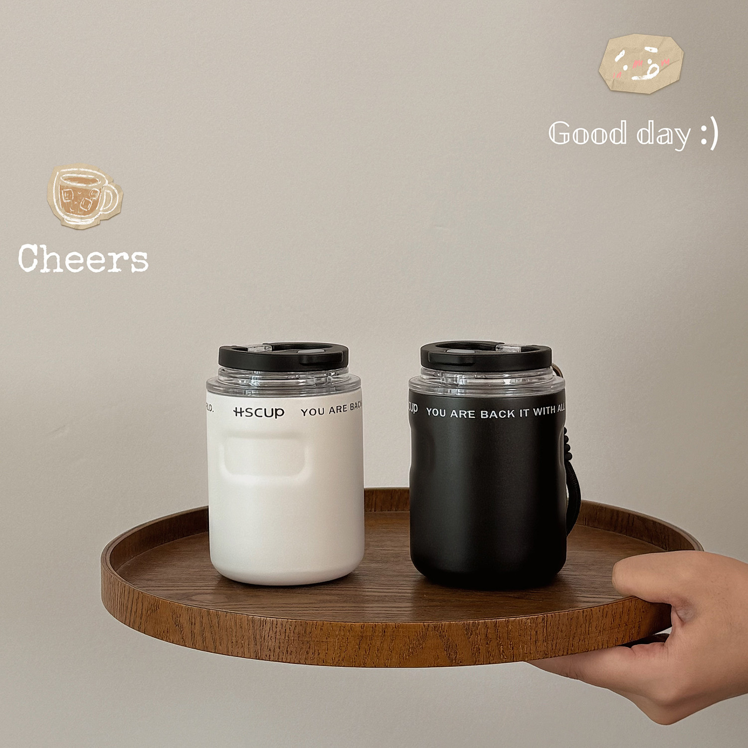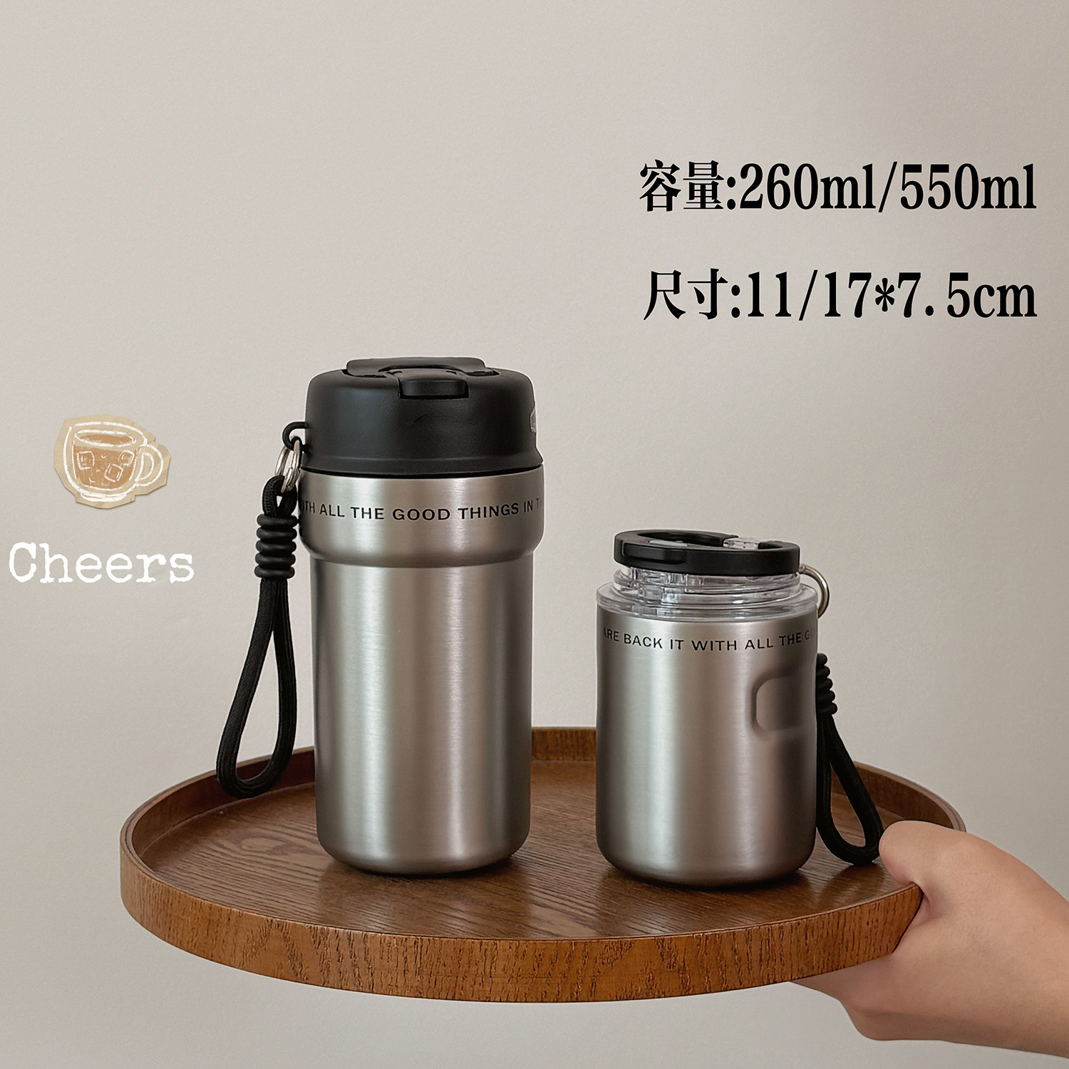 简约ins风复古咖啡杯文艺高颜值高档便携双饮不锈钢保温杯水杯子