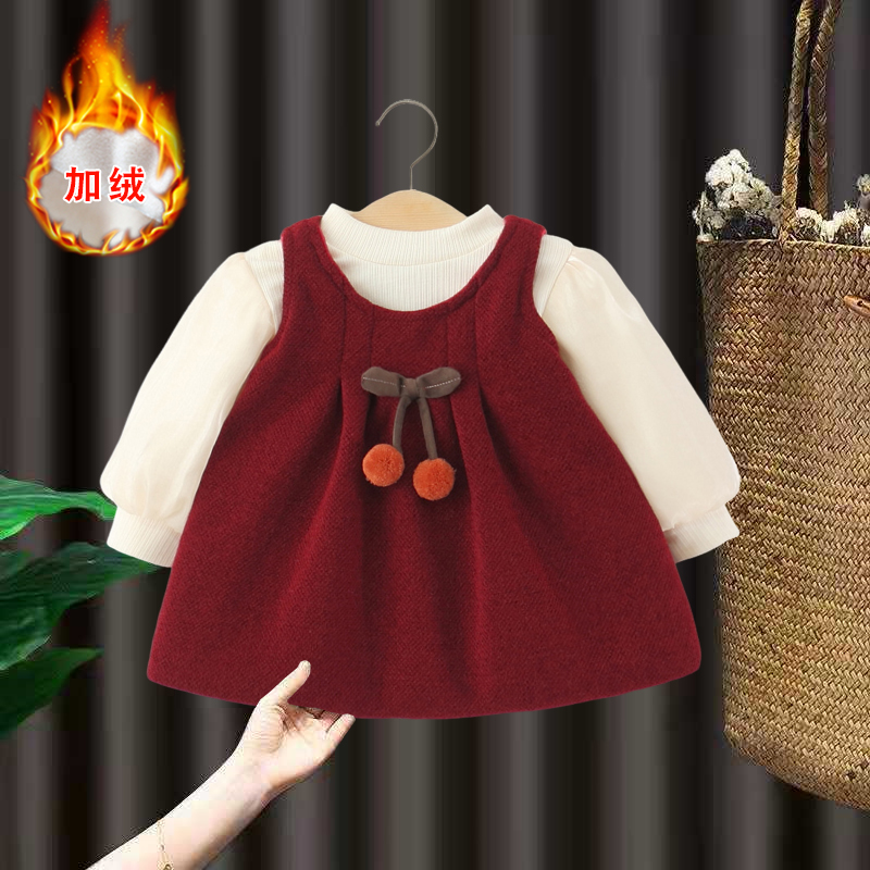 女童加绒连衣裙套装秋冬2025新款洋气宝宝周岁礼服儿童公主两件套