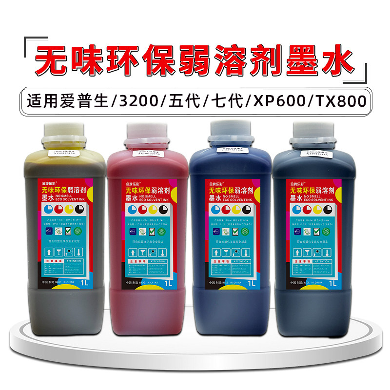 户外专用弱溶剂环保无味写真机压电油性爱普生五代七代头XP600喷头i3200耐晒户外透明方瓶彩色墨水