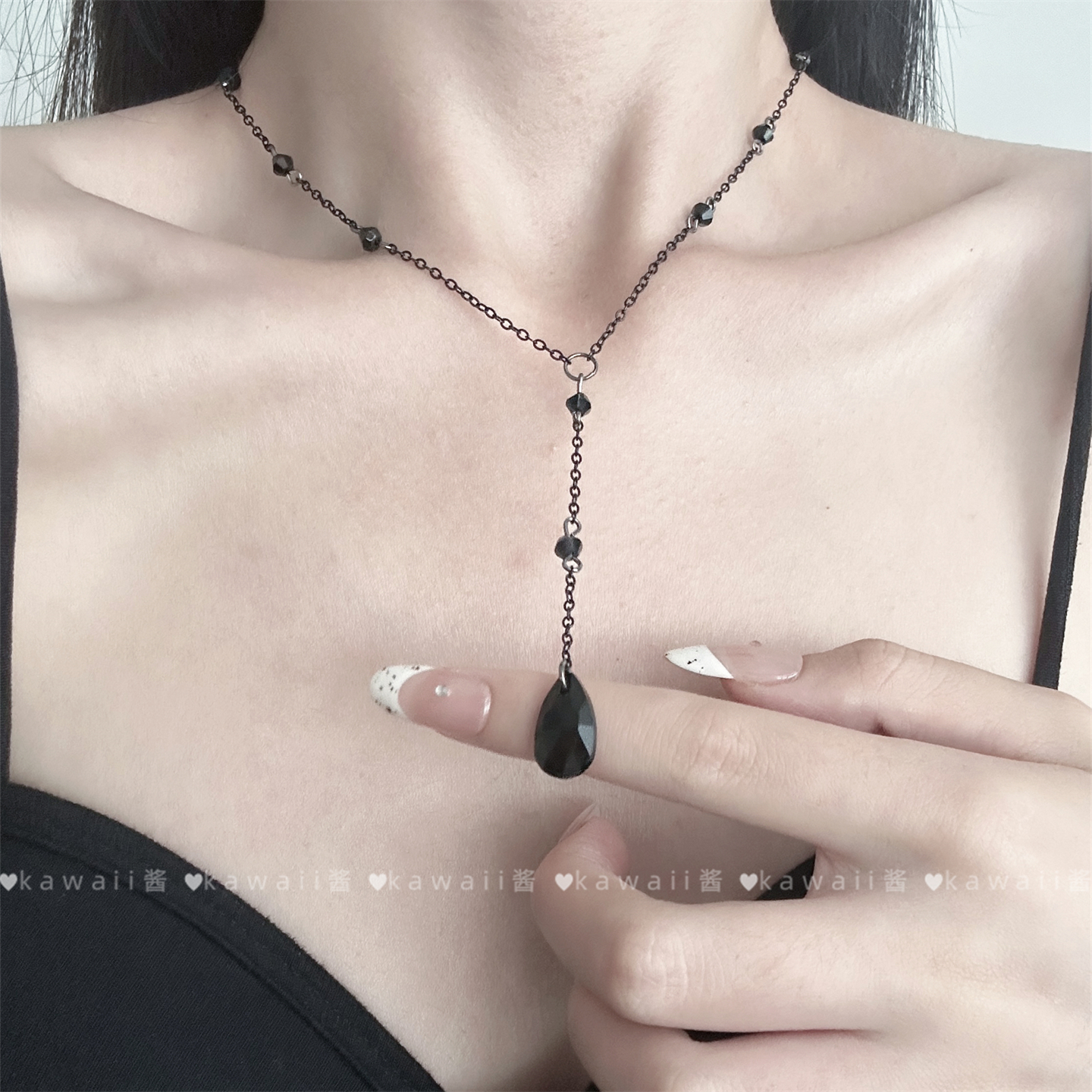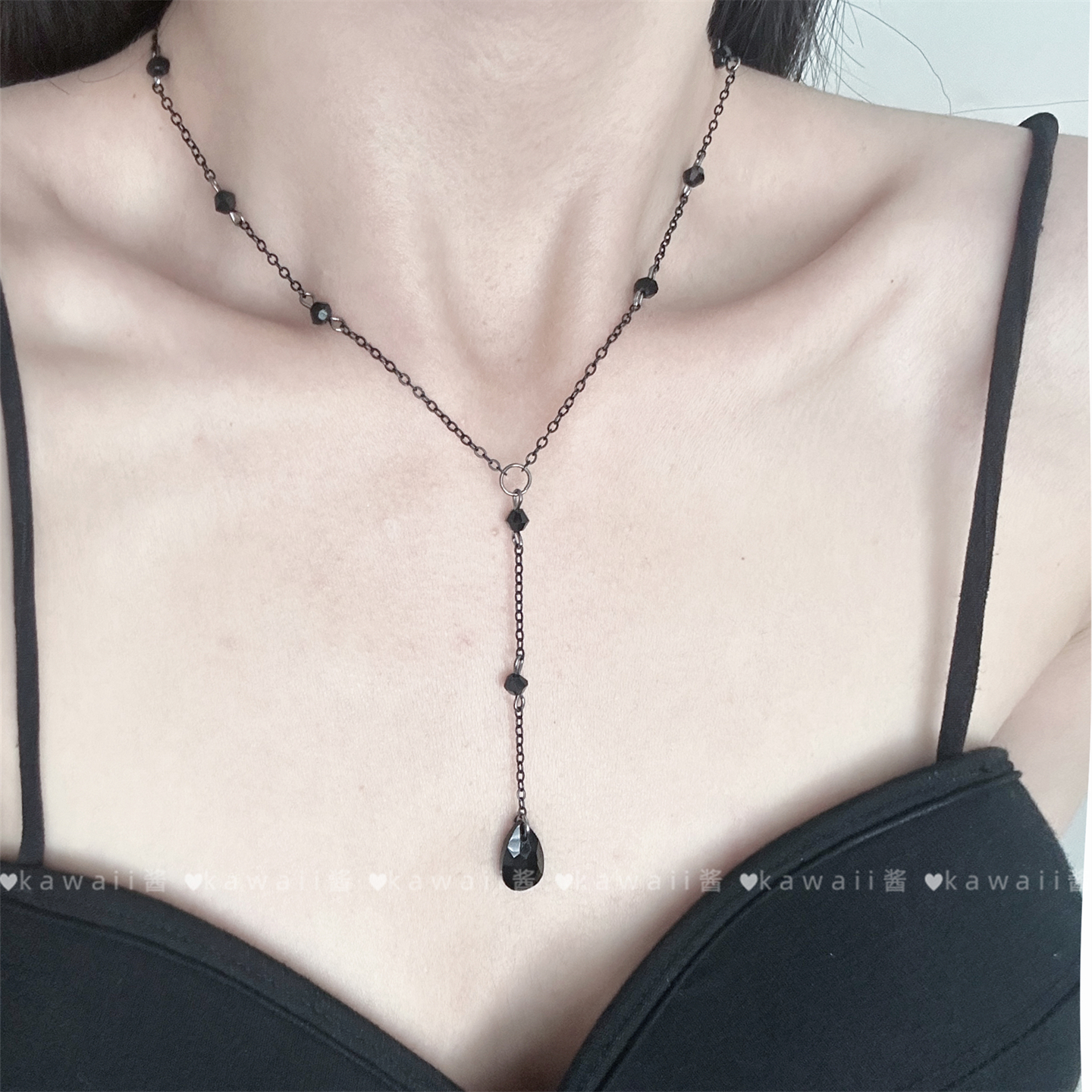暗黑系简约水滴吊坠项链