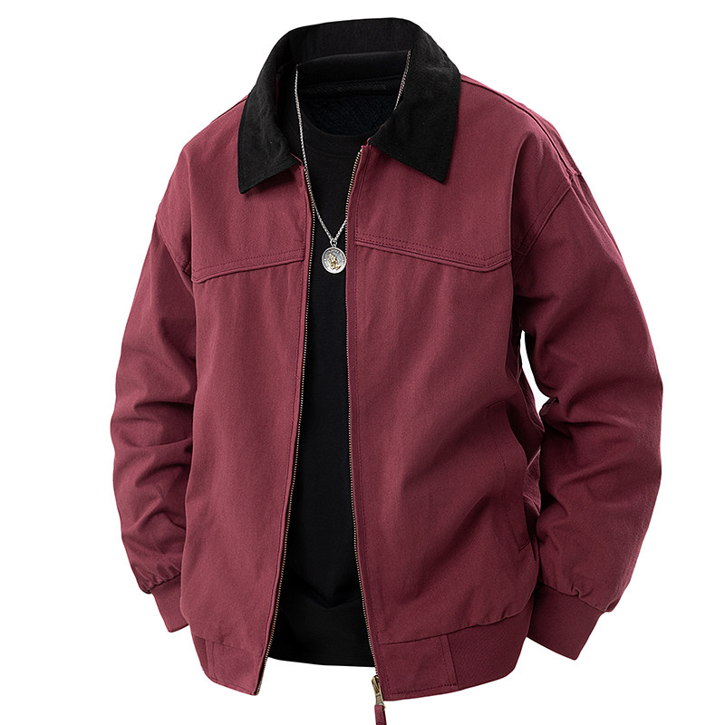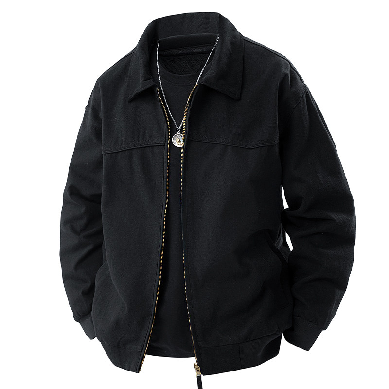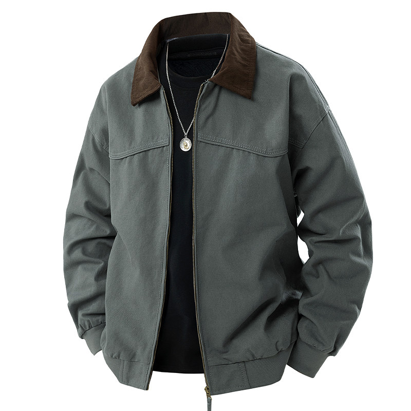 罗蒙纯棉外套男春秋季美式复古潮牌工装底特律翻领休闲百搭夹克男