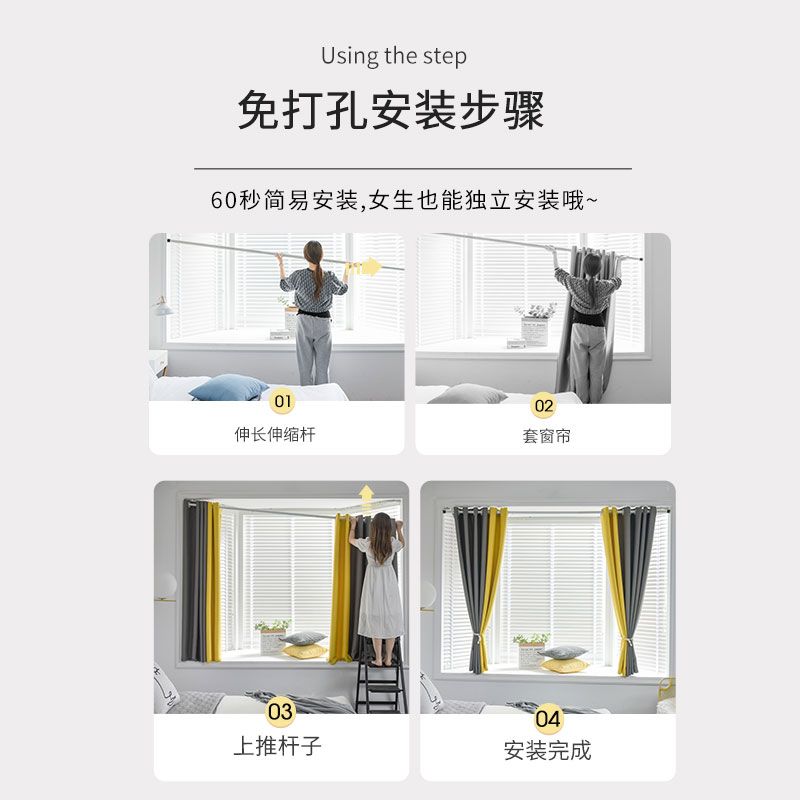 卧室全遮光窗帘免打孔安装伸缩杆一整套少女飘窗遮阳布2021年新款