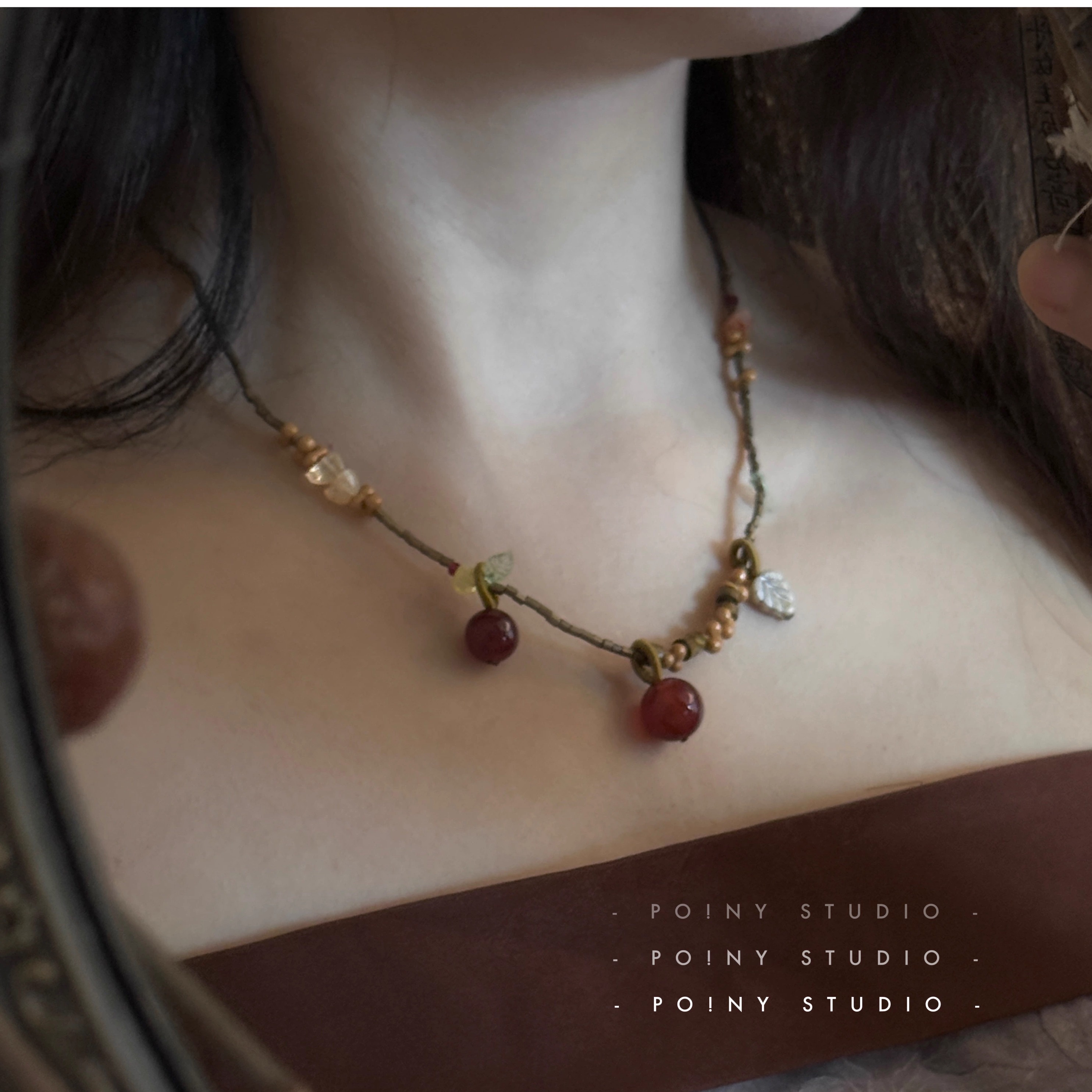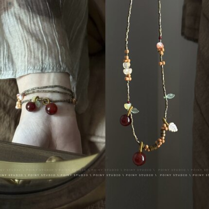 复古民族风项链女红果子吊坠高级感串珠毛衣链民族风手链新款潮