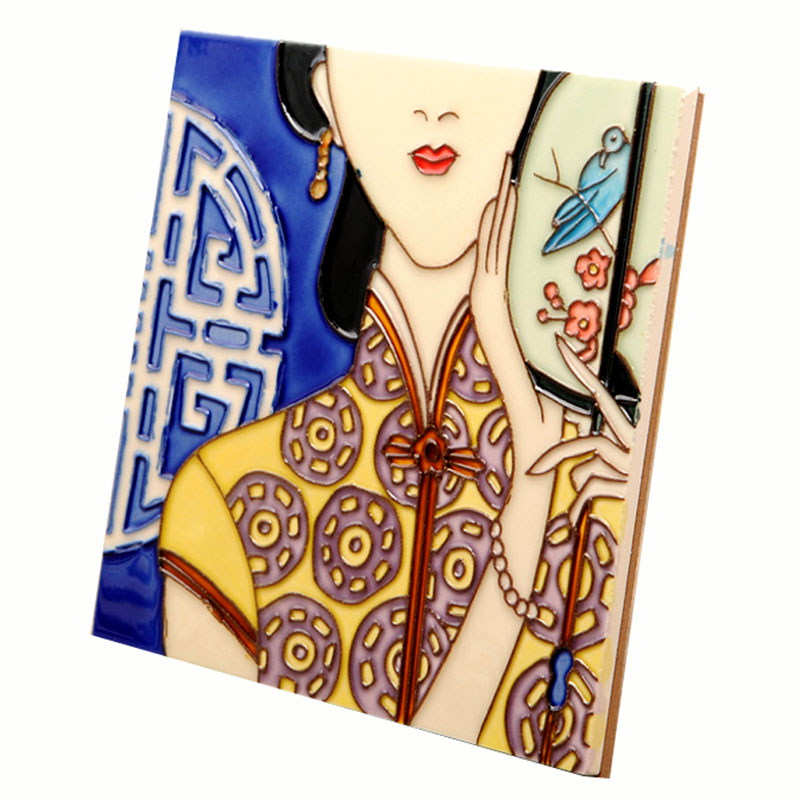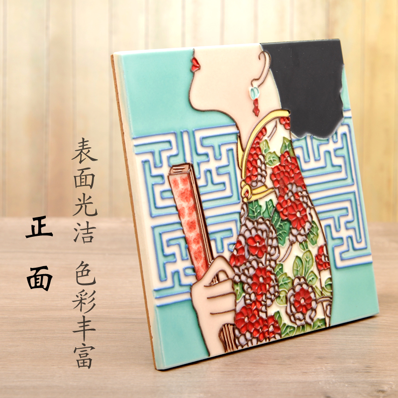 中国风特色唐三彩手绘瓷板画中式客厅玄关装饰画餐厅民宿墙面挂画