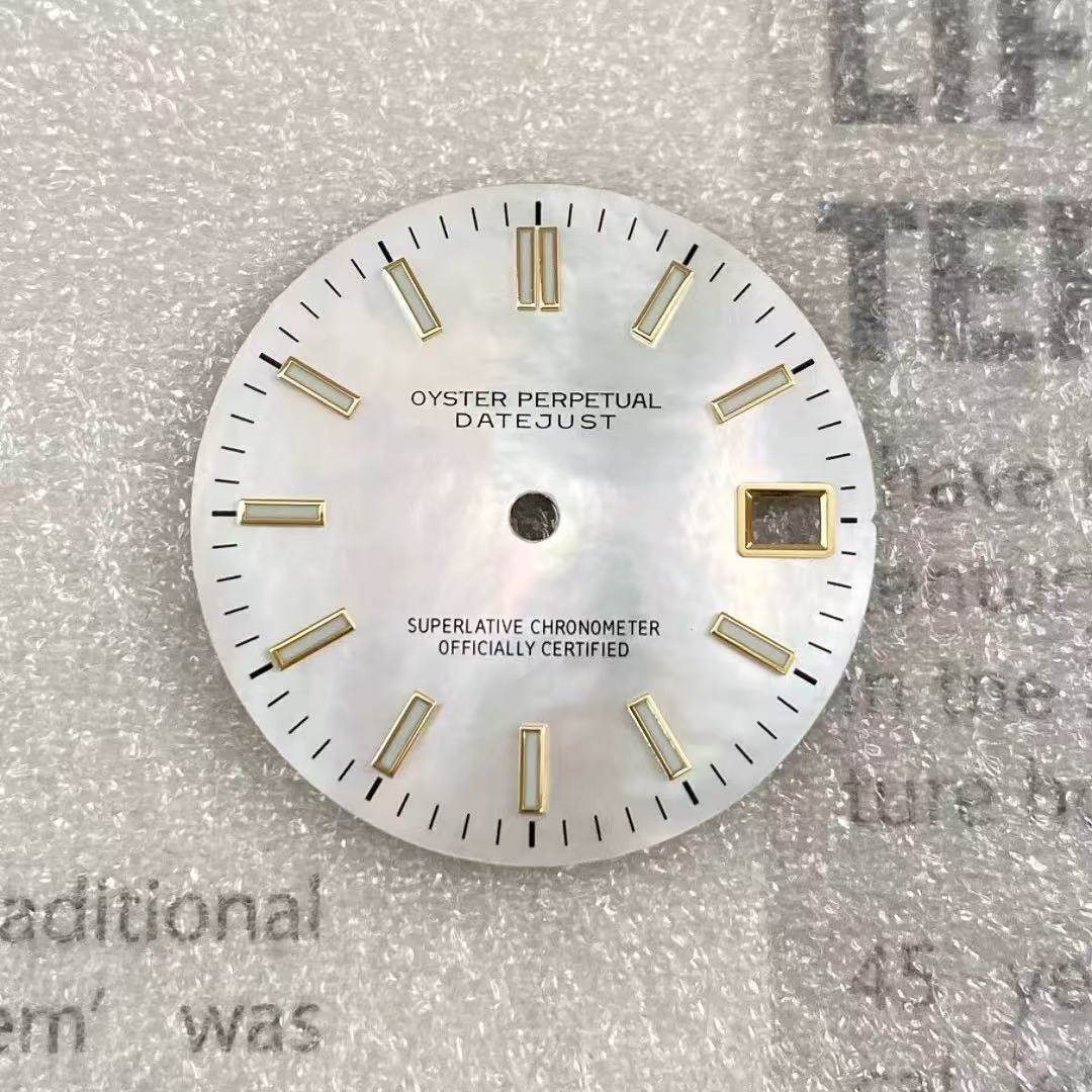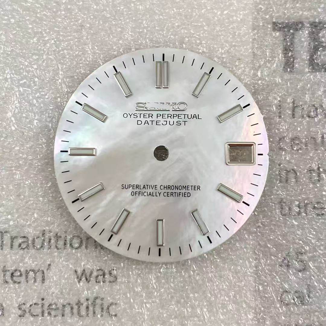 珍珠贝母表盘改装配件28.5mm 条钉字面适装nh35机芯 绿夜光