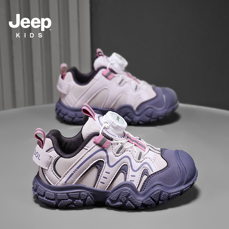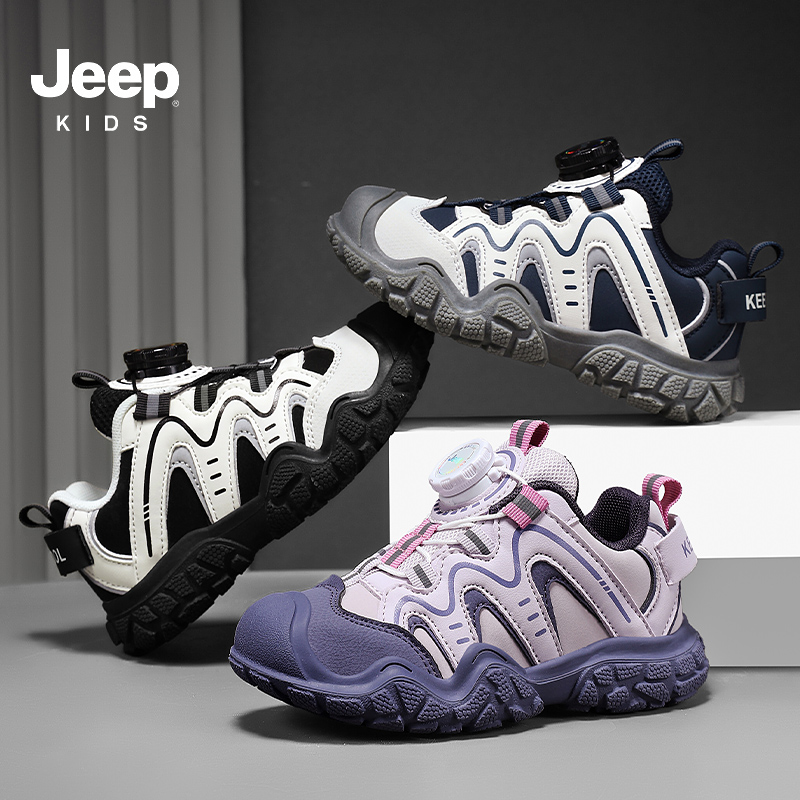 jeep女童鞋子2025秋季新款皮面防水防滑软底女孩儿童户外运动鞋女