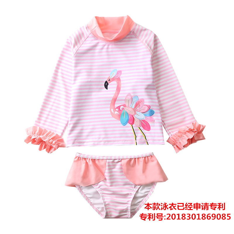 火烈鸟儿童欧美防晒分体游泳衣