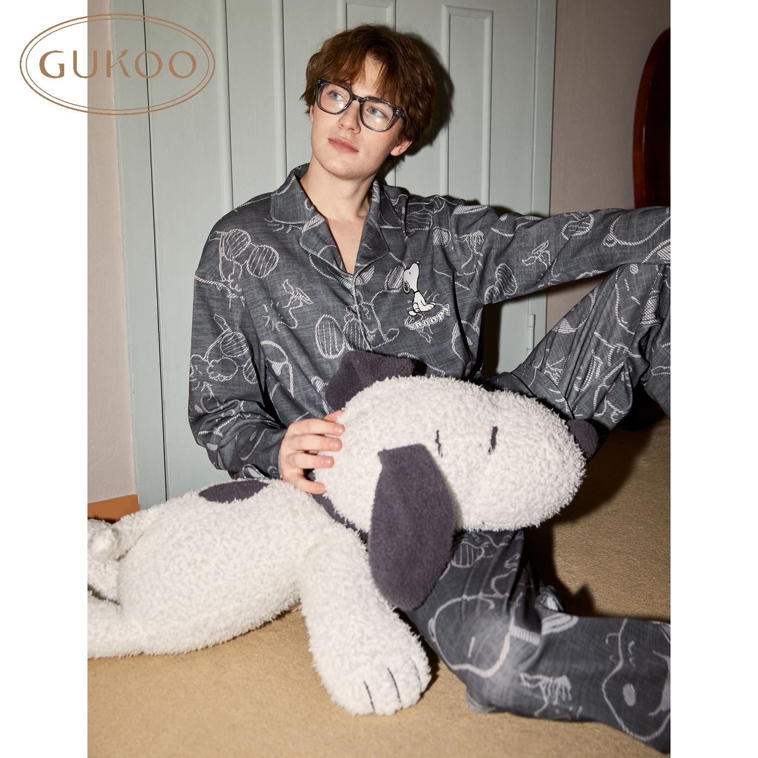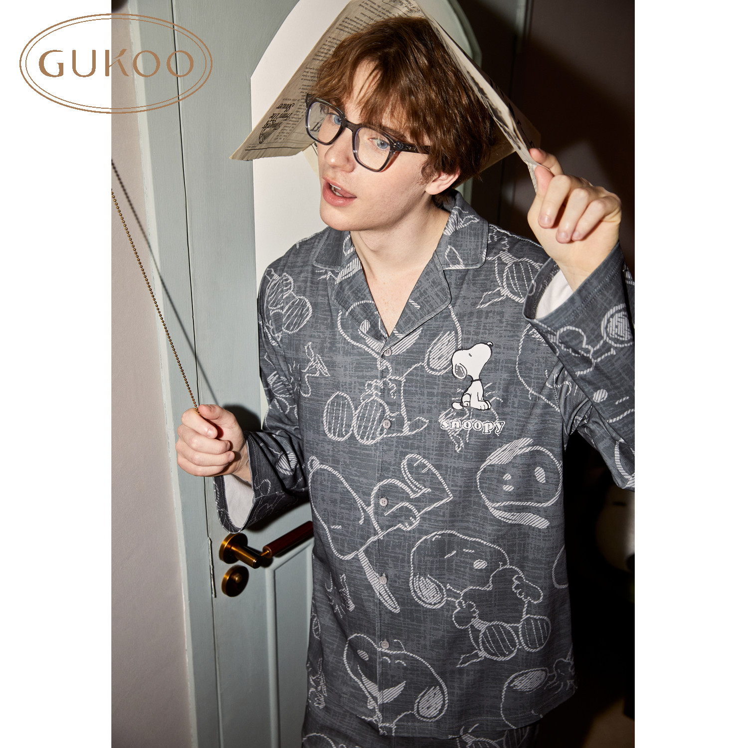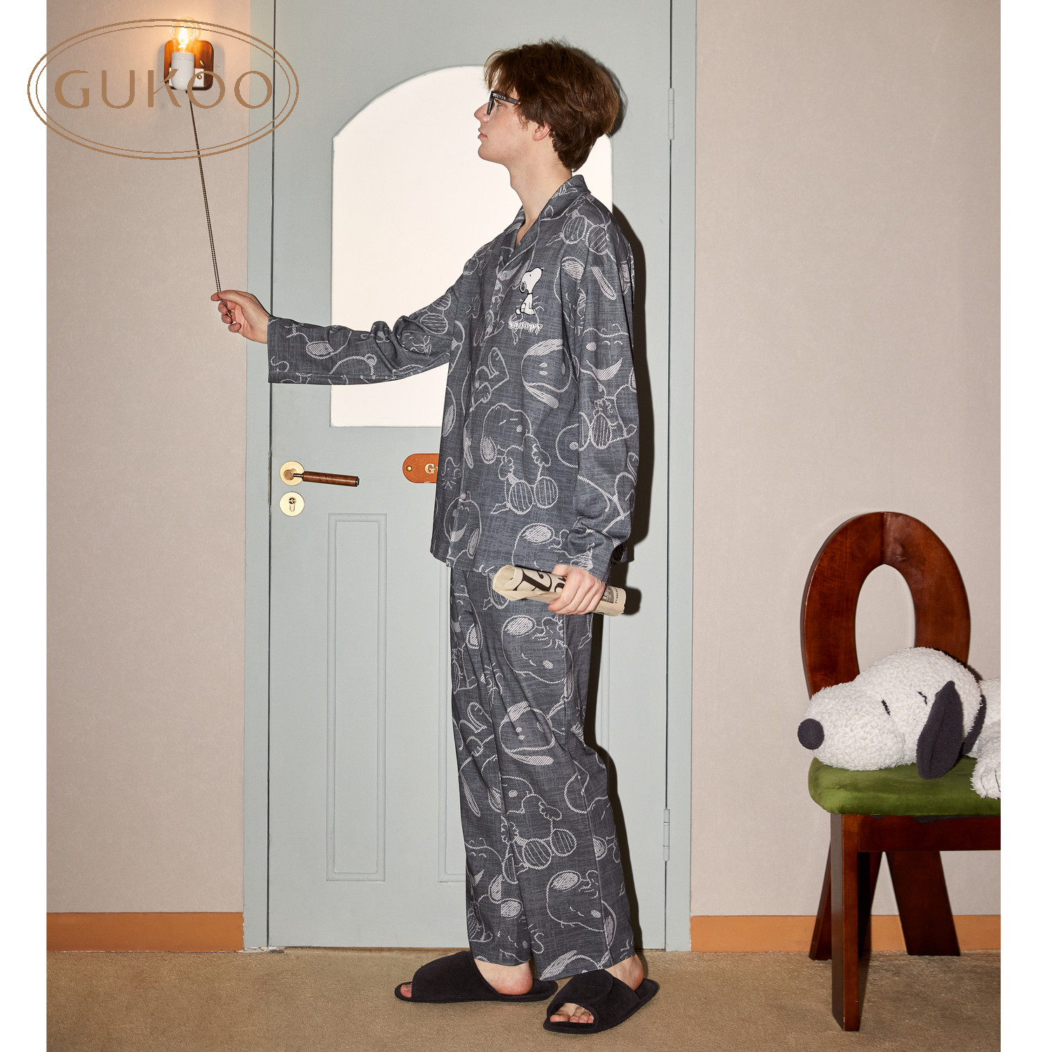 Gukoo/果壳睡衣男春秋款史努比联名新款宽松男士家居服套装C
