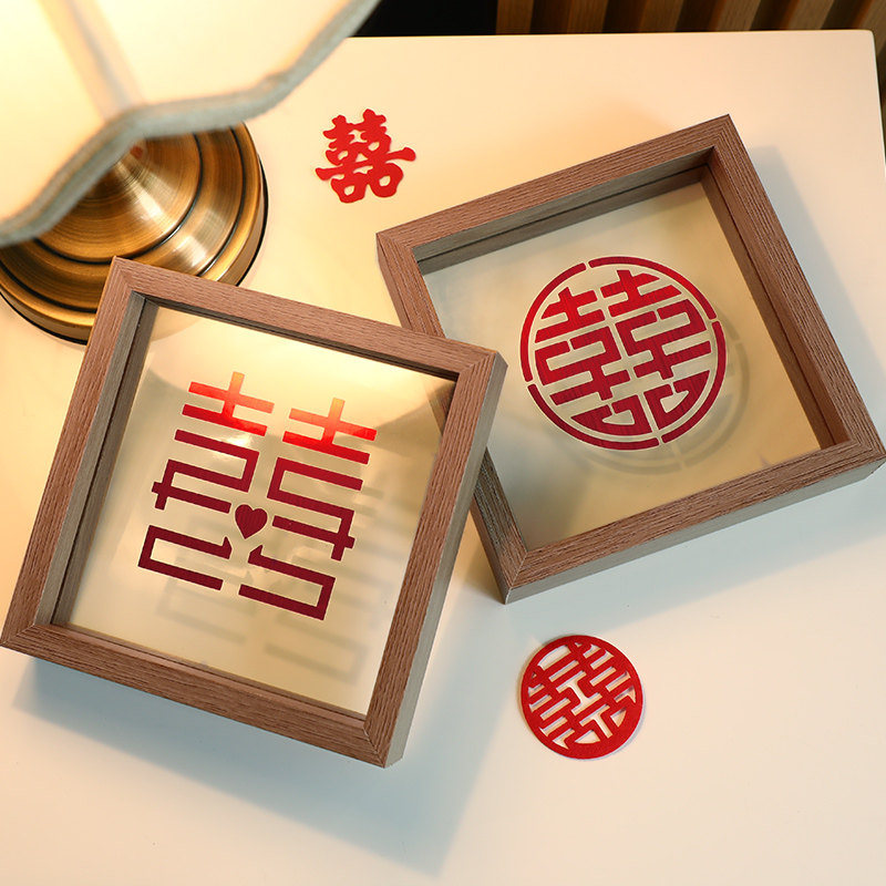 结婚订婚装饰品简约喜字贴相框diy亚克力摆件礼物送新人婚房布置
