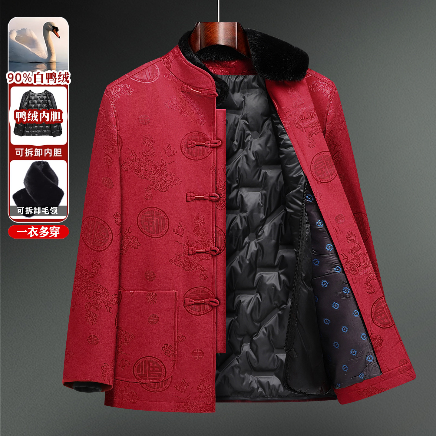 唐装男中老年人可拆卸内胆羽绒冬季爷爷生日过寿喜公公爸爸婚宴装
