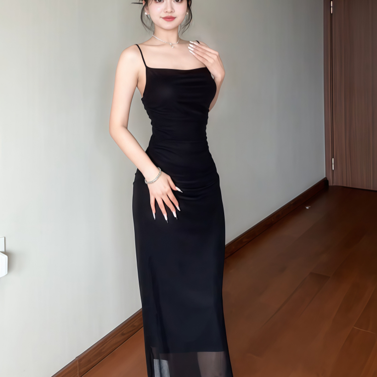 instahot 纯欲收腰吊带连衣裙女2025春夏新款轻奢宴会显瘦长裙