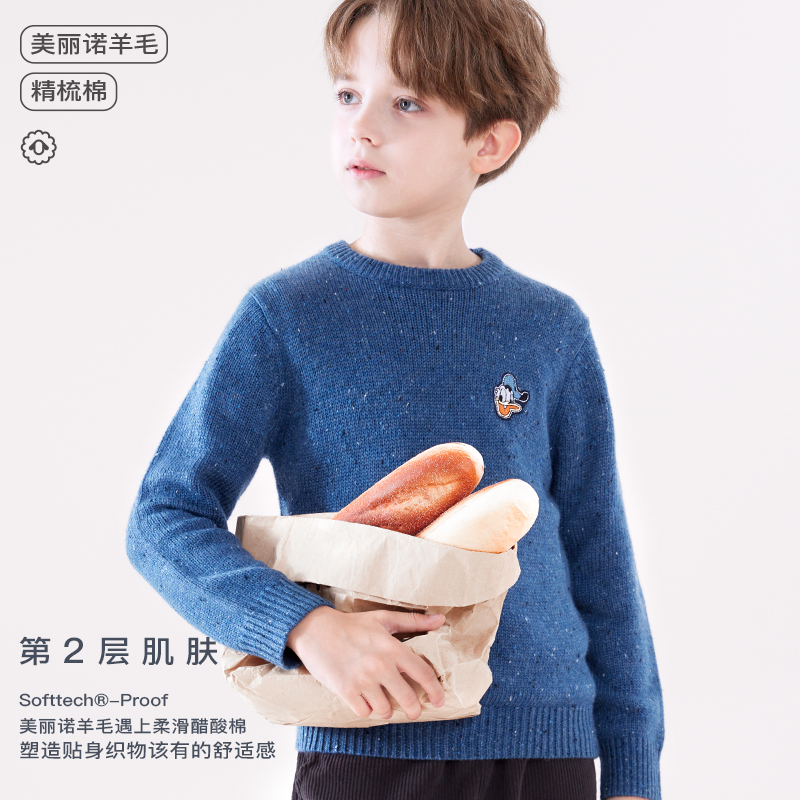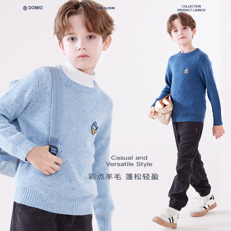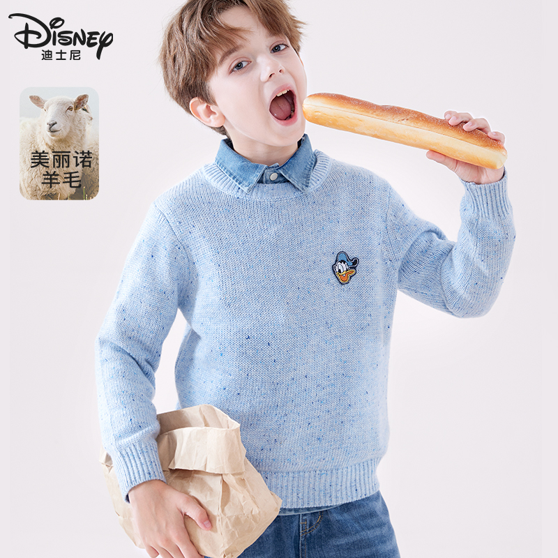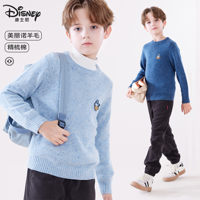 迪士尼男童毛衣儿童针织打底衫2025秋冬新款中大童绵羊毛线衣加厚