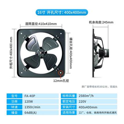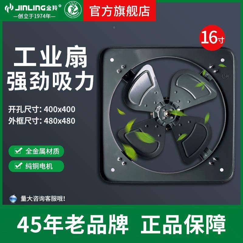 金羚1111346寸工业排气扇方形敞式金属排开风扇厨房店餐馆餐厅F酒