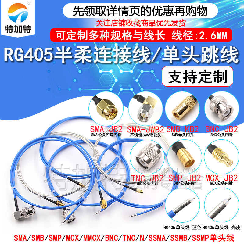 RG405半柔086射频跳线SMA-K SMB SMP MMCX TNC BNC MCX N公单头线