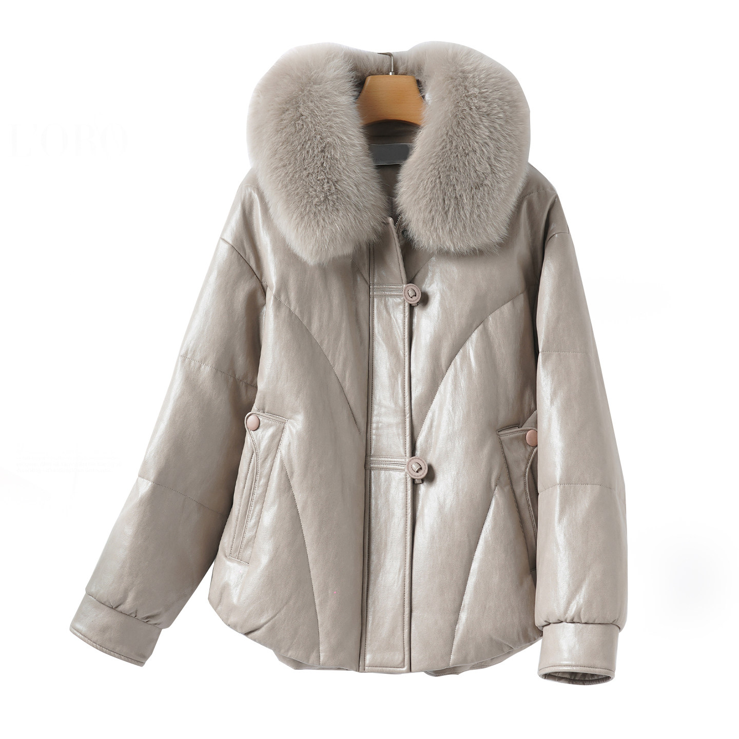 绵羊皮衣女短款狐狸毛领皮羽绒服