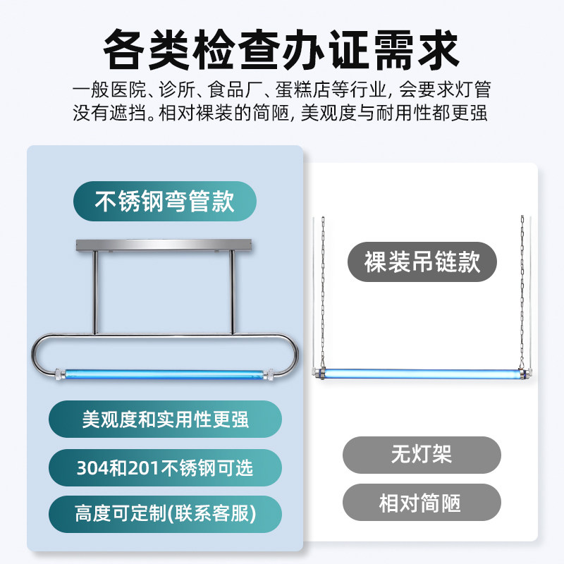 飞利浦带盒不锈钢弯管杀菌灯360度灭菌食品厂吊挂式紫外线消毒灯