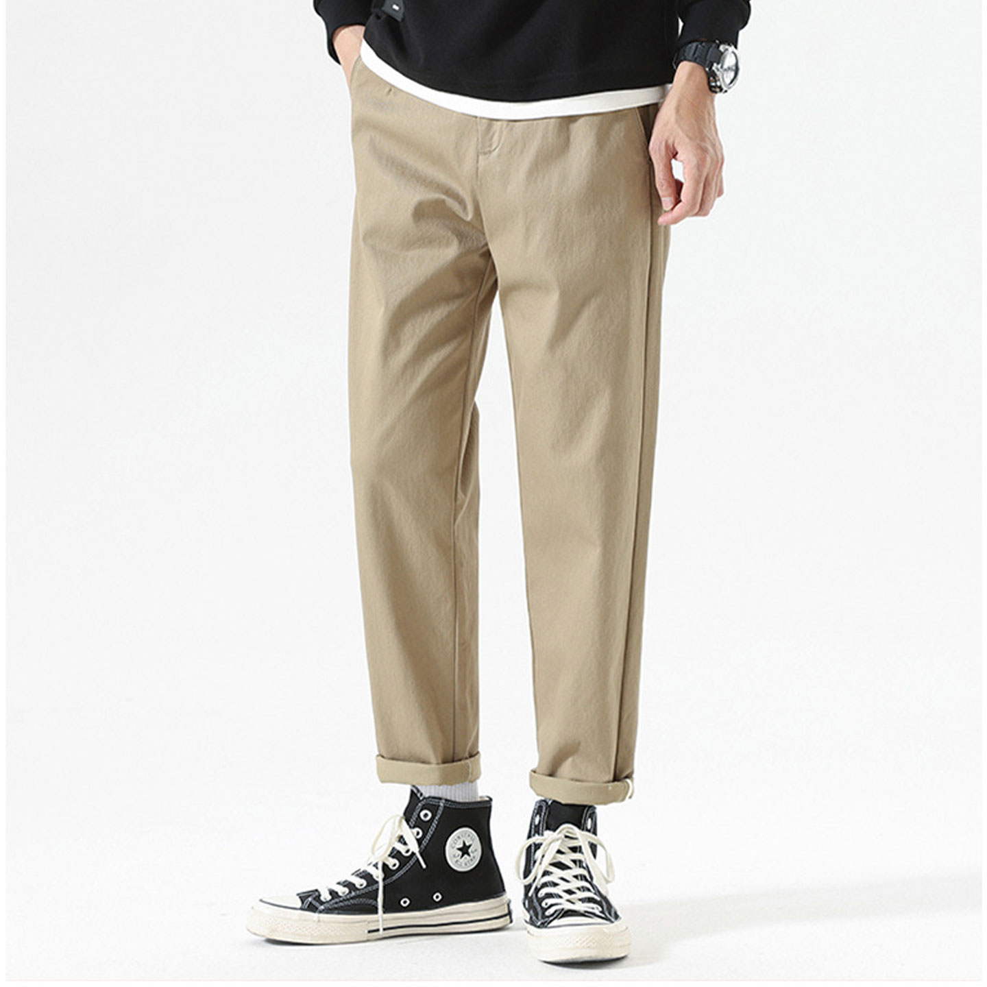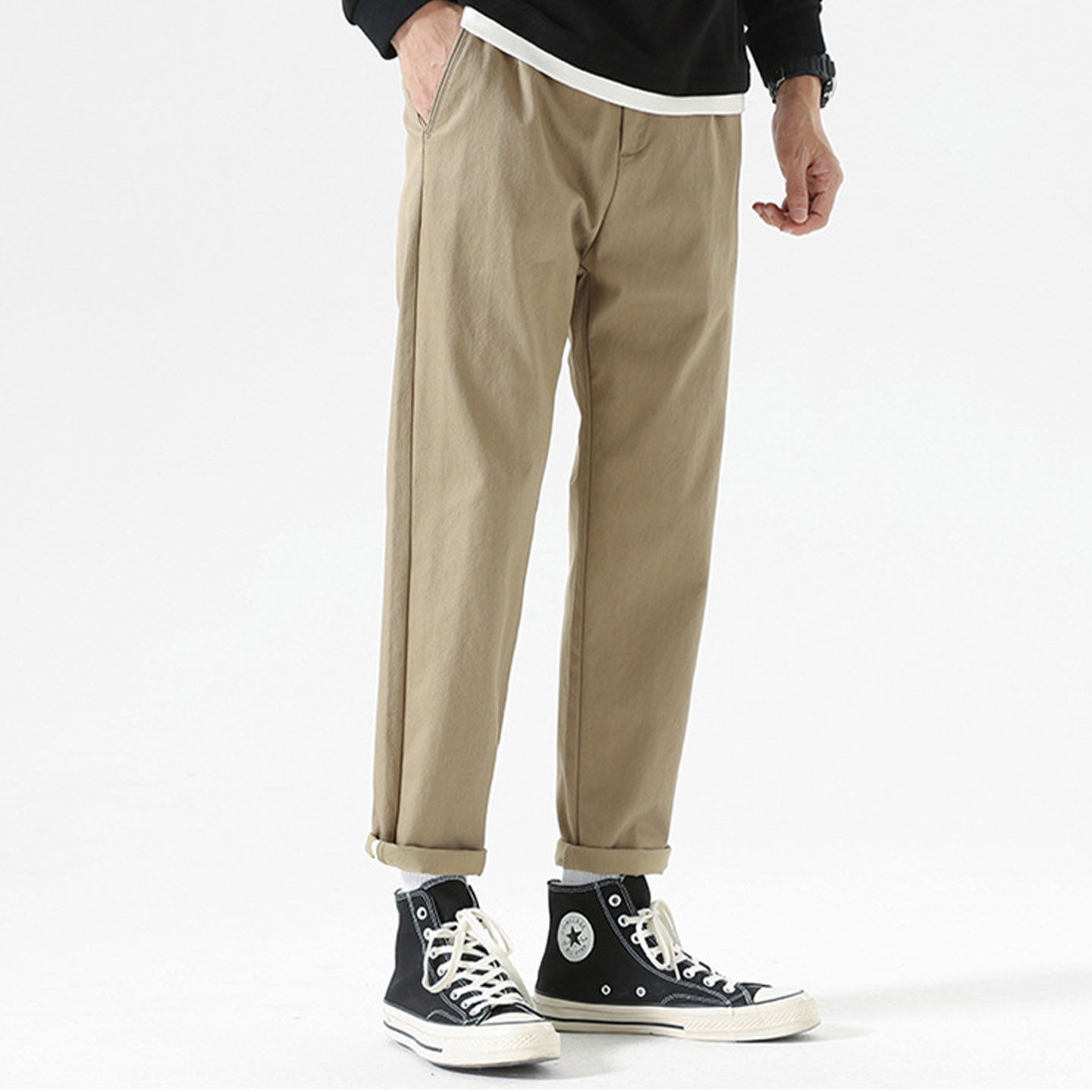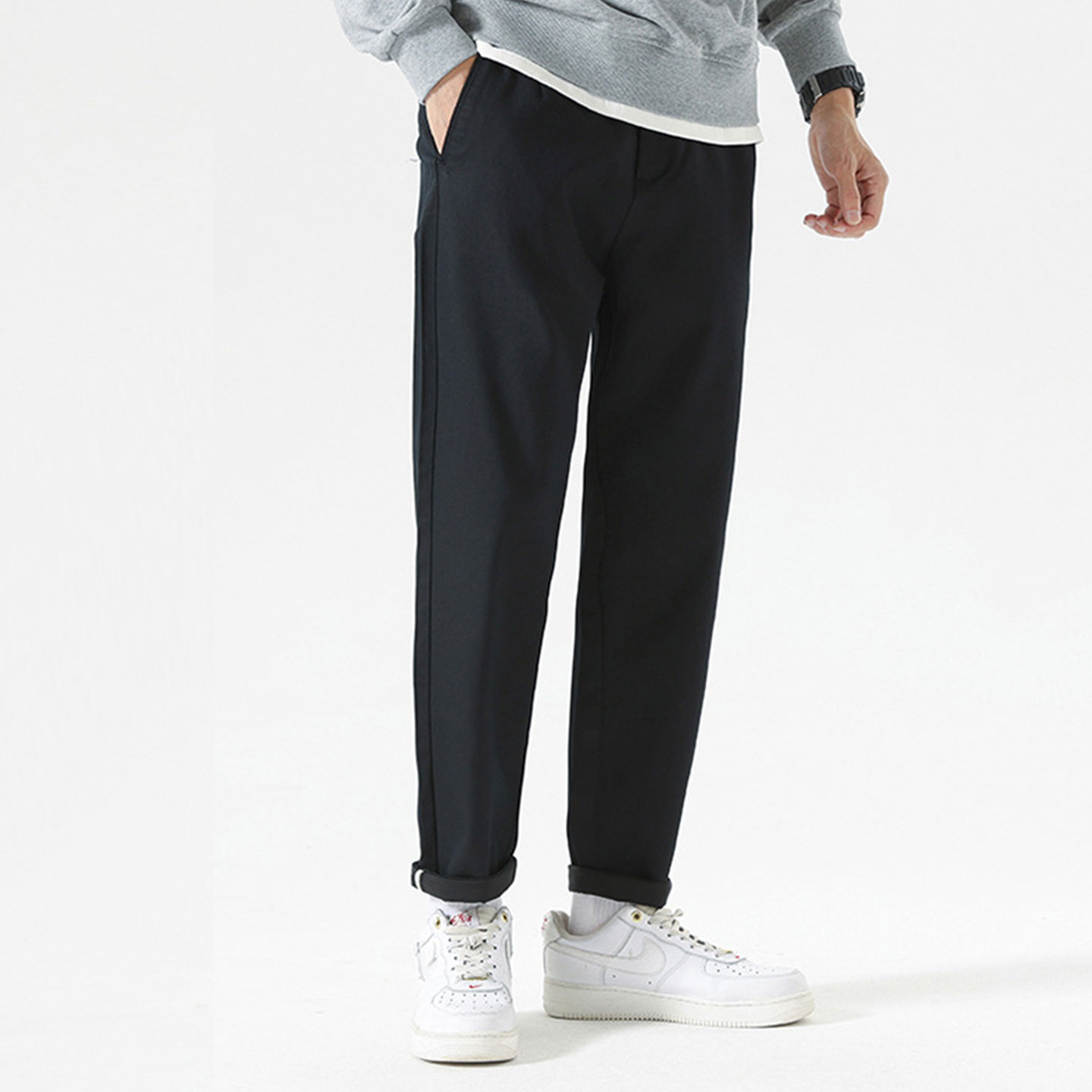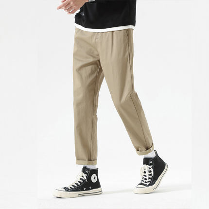 2025秋新款男款纯色宽松锥形休闲裤直筒舒适百搭小脚九分裤子男