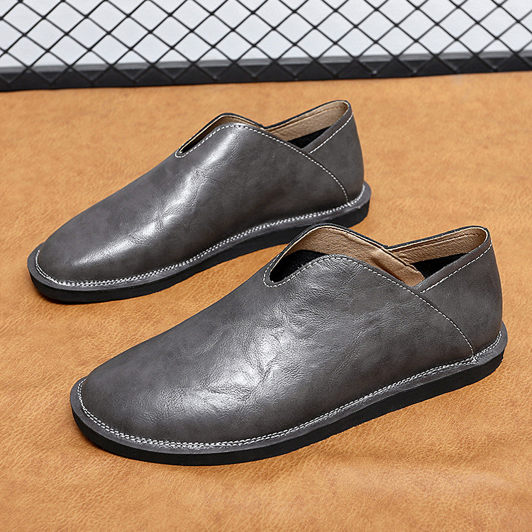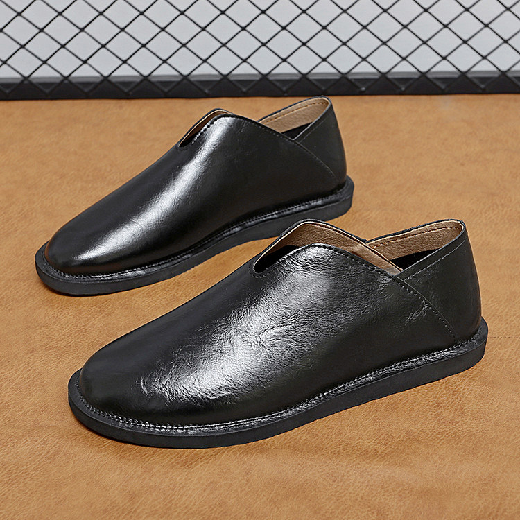 尖头休闲男皮鞋2025新款轻便软低真皮小码时尚潮流一脚蹬豆豆鞋男