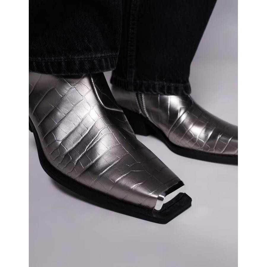 美女当家英国代购2025新款银色方头防踢头舞台时尚休闲男切尔西靴