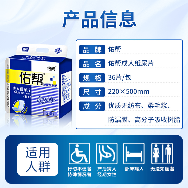 佑帮成人纸尿片老年尿不湿U直条尿垫经期护理尿布加厚老人用护垫
