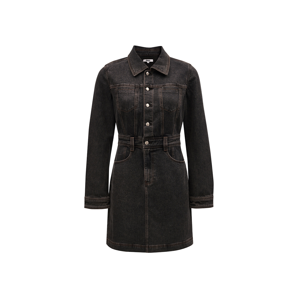 o区绫致ONLY2025春夏新款复古正肩显瘦翻领牛仔短裙连衣裙女时尚