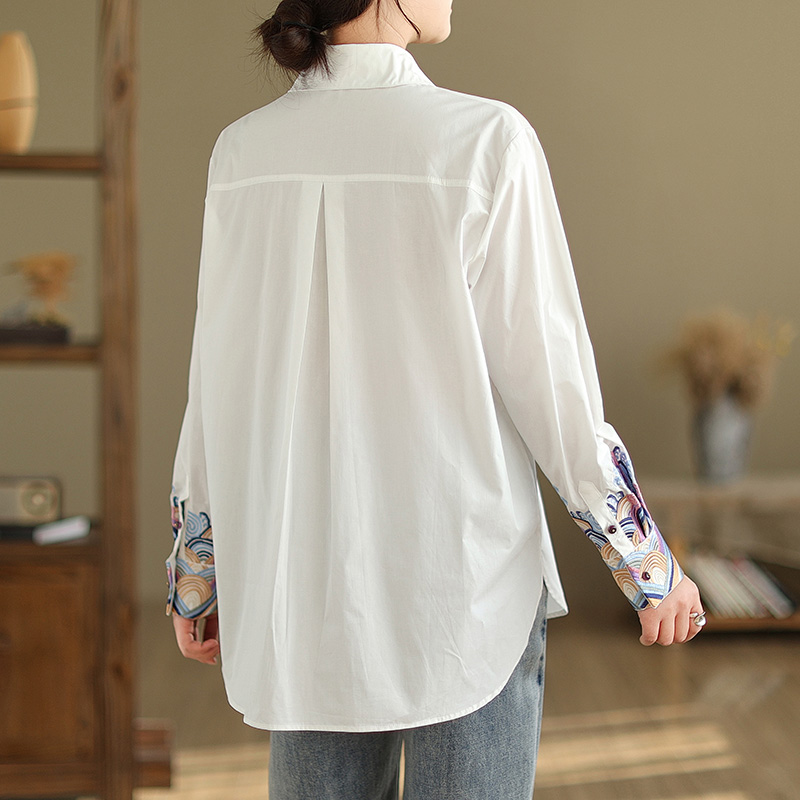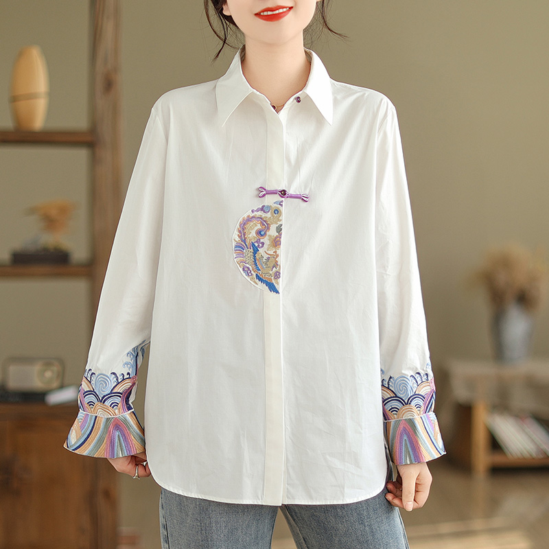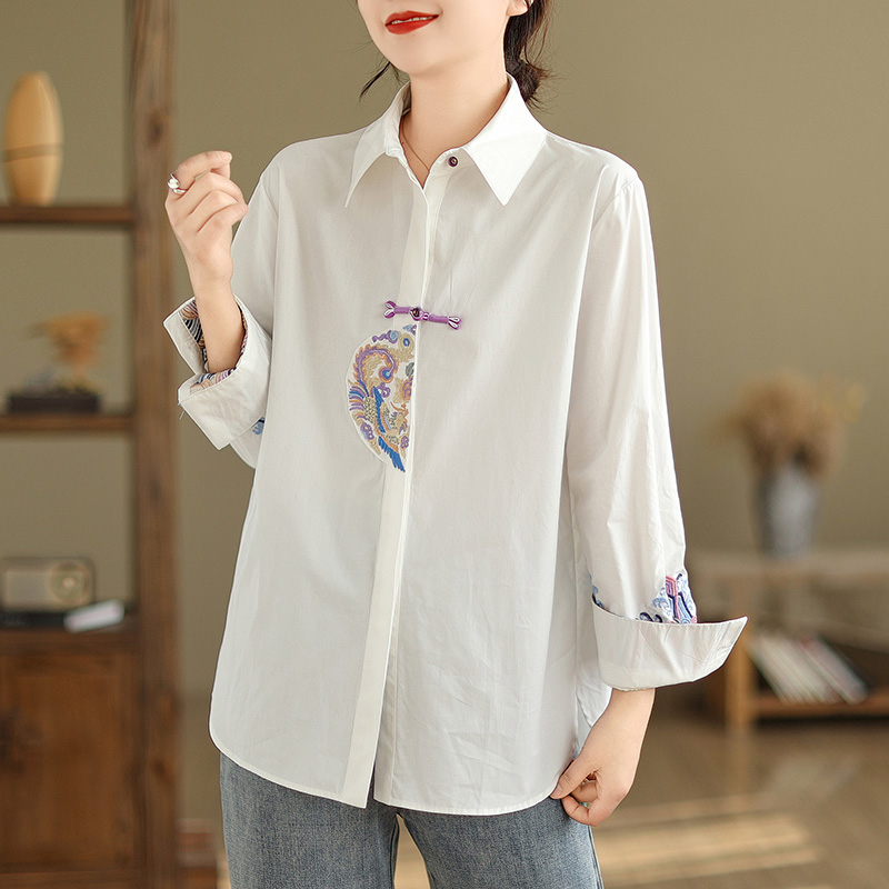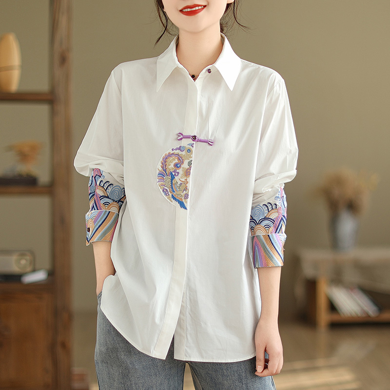 新中式国风刺绣衬衫女长袖上衣2024春装新款宽松百搭盘扣打底衬衣
