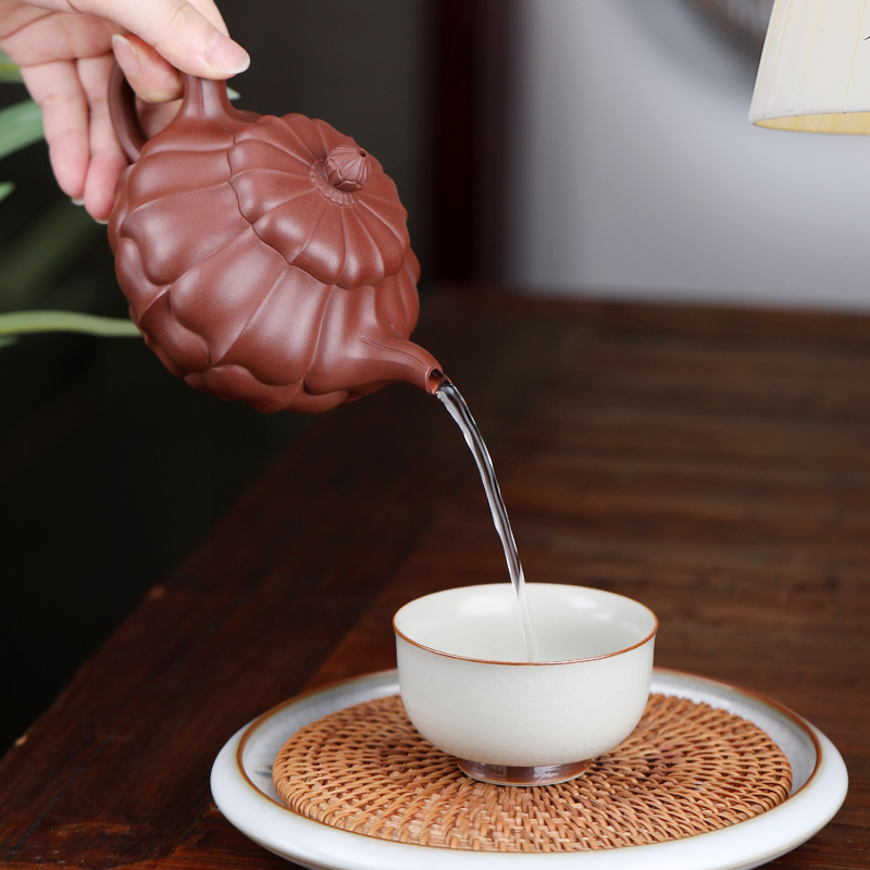 宜兴紫砂壶家用功夫茶壶茶具原矿底槽清纯手工高合菱