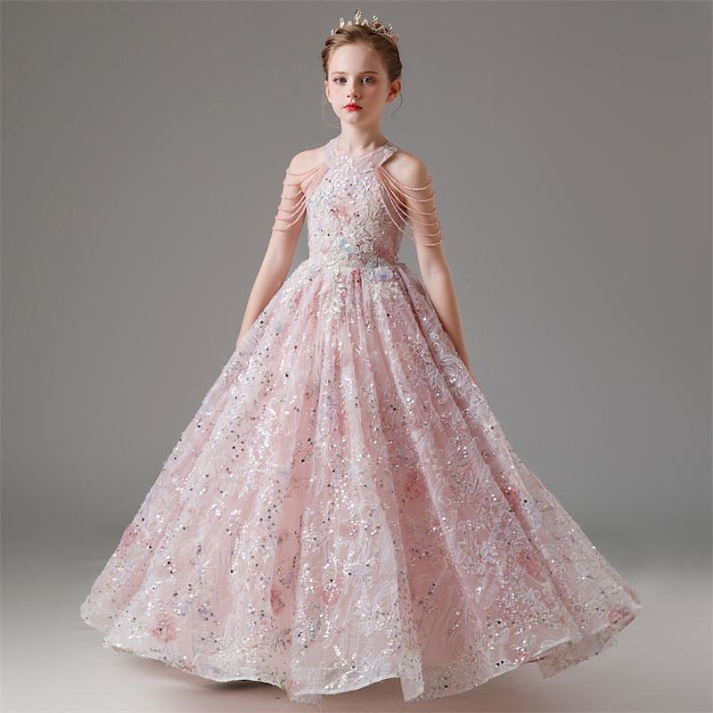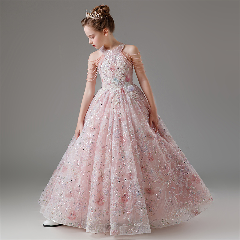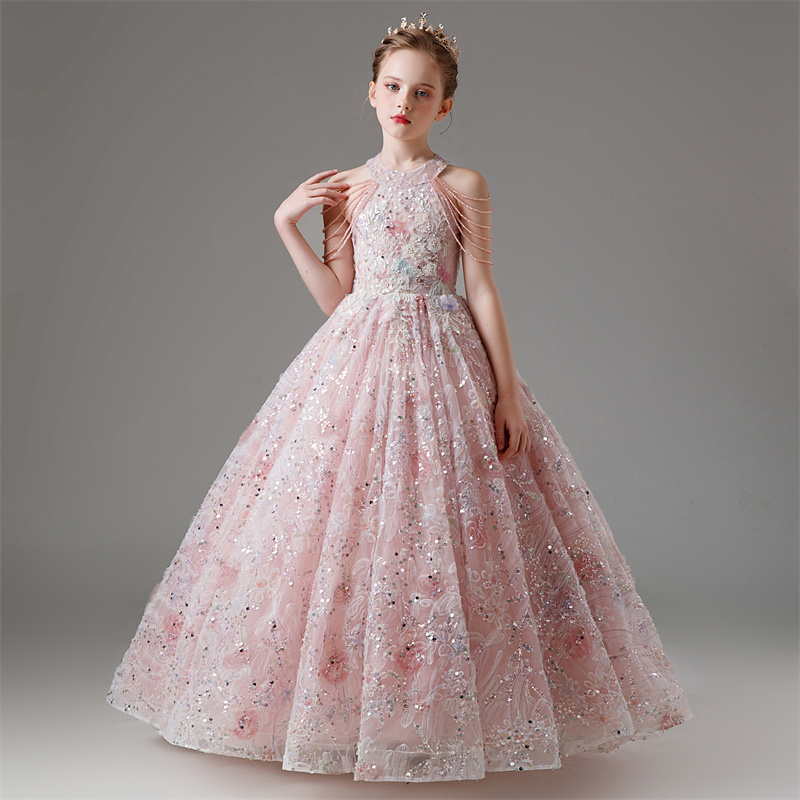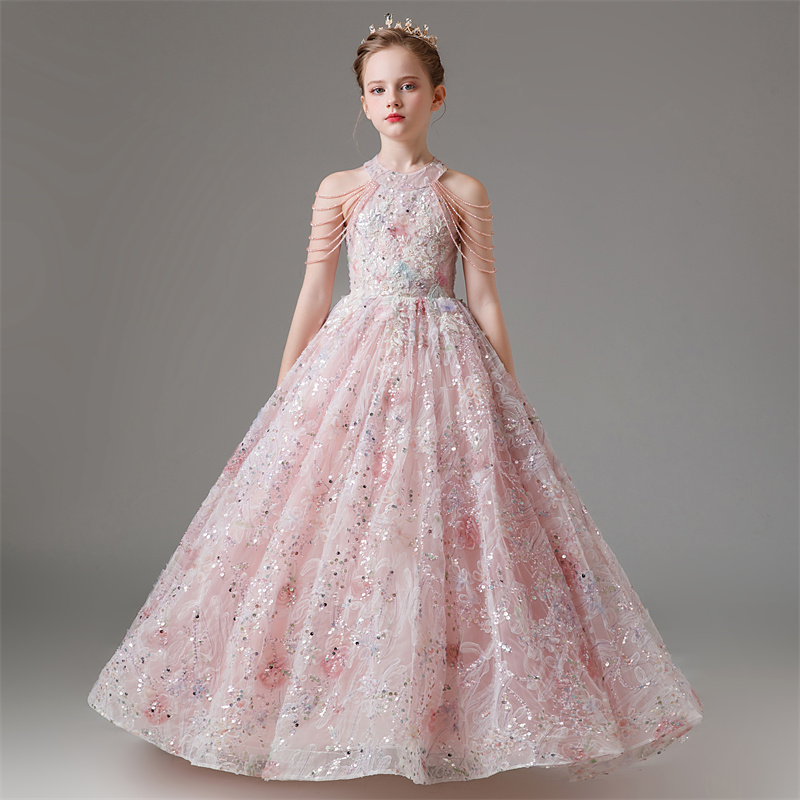 儿童礼服宝宝生日女童花童公主裙蕾丝小众高端主持人钢琴演出服夏