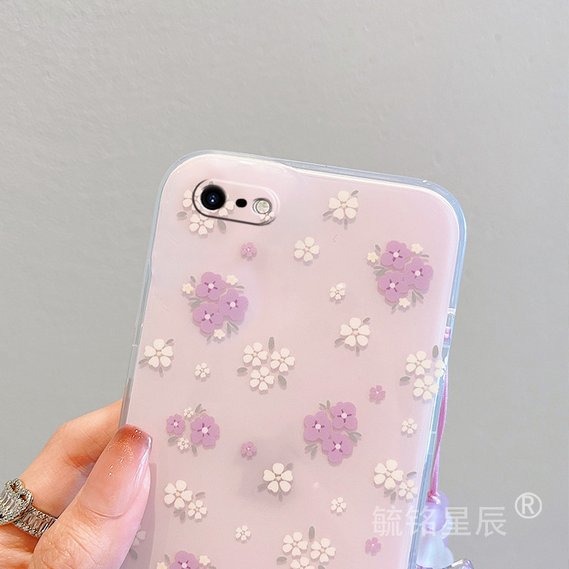 适用苹果8手机壳iphone7plus紫色se3小花朵2带挂绳的6腕带6splus女款6s小众5高级感4新款xsmax全包硅胶透明xr