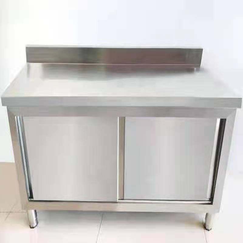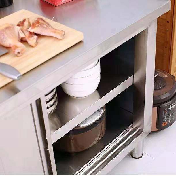 不锈钢整体橱柜碗盘柜三边围拉门工作台操作台打荷台切菜桌子带靠