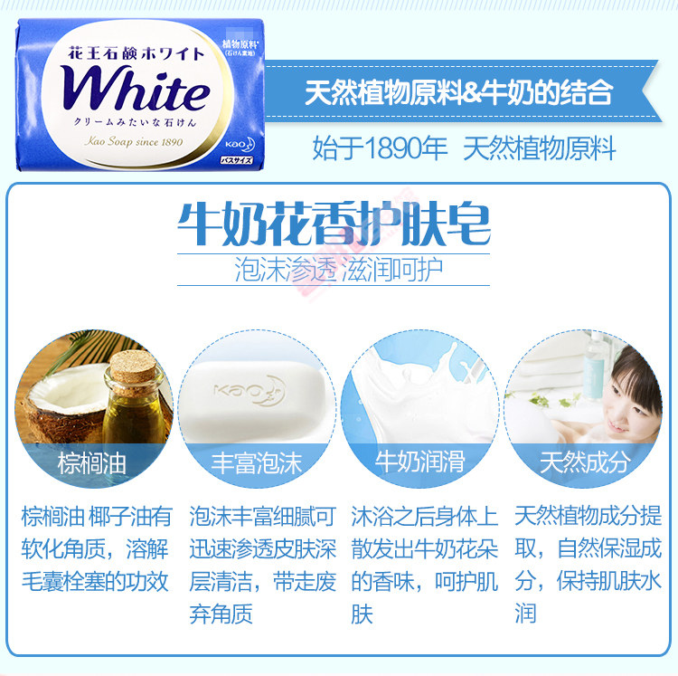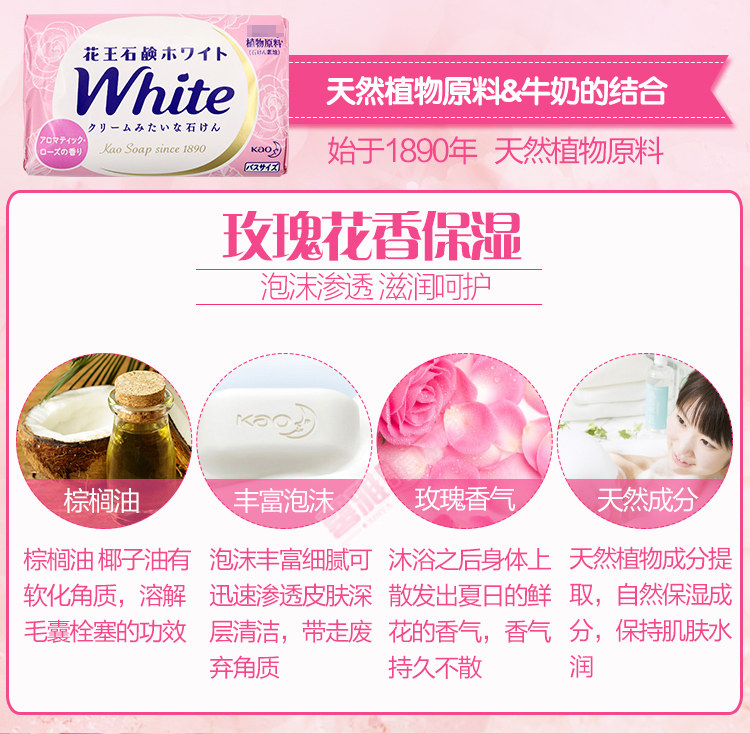 日本花王香皂植物牛奶玫瑰柠檬香