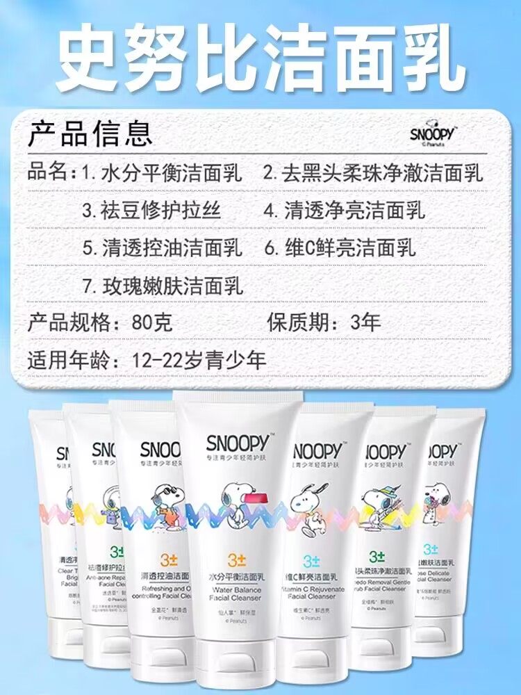 史努比补水洁面乳儿童青少年男女保湿洗面奶控油清爽提亮温和