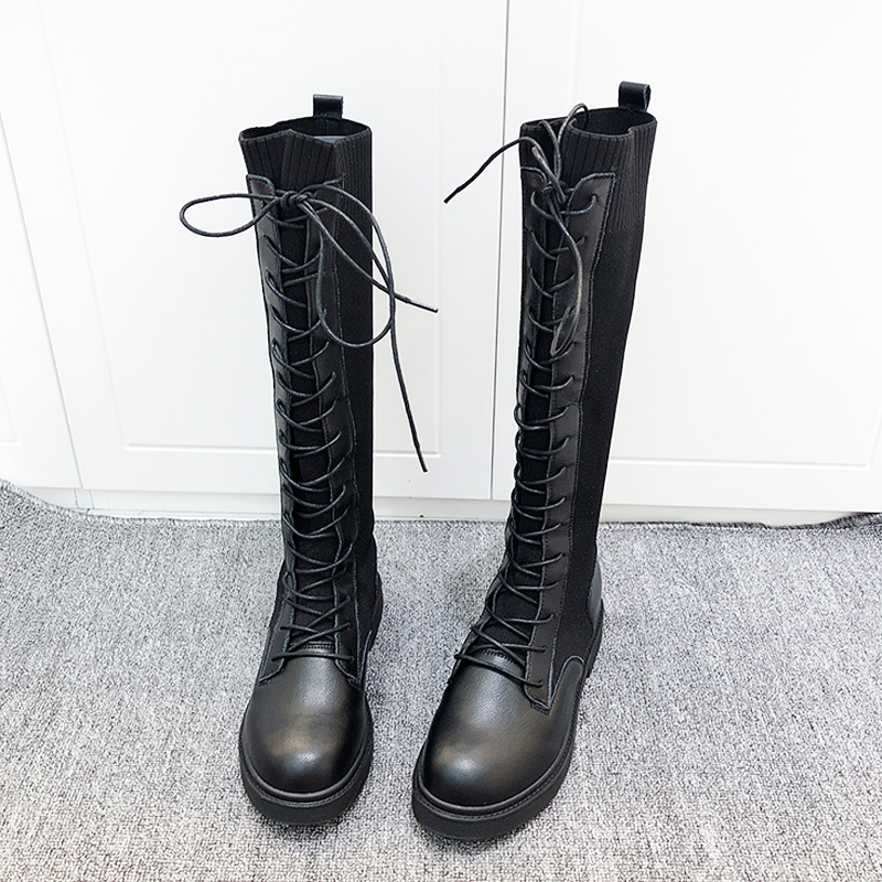 大码女鞋41一43长筒新款不过膝平底秋冬高筒弹力大号单靴粗腿胖腿