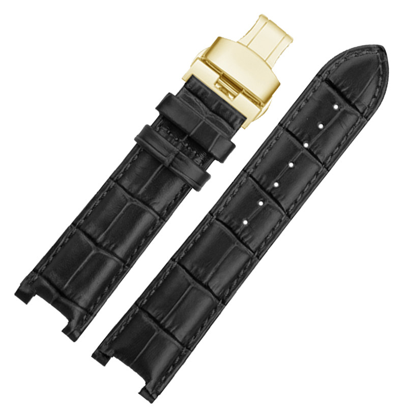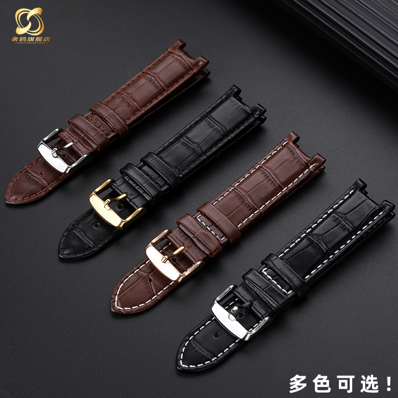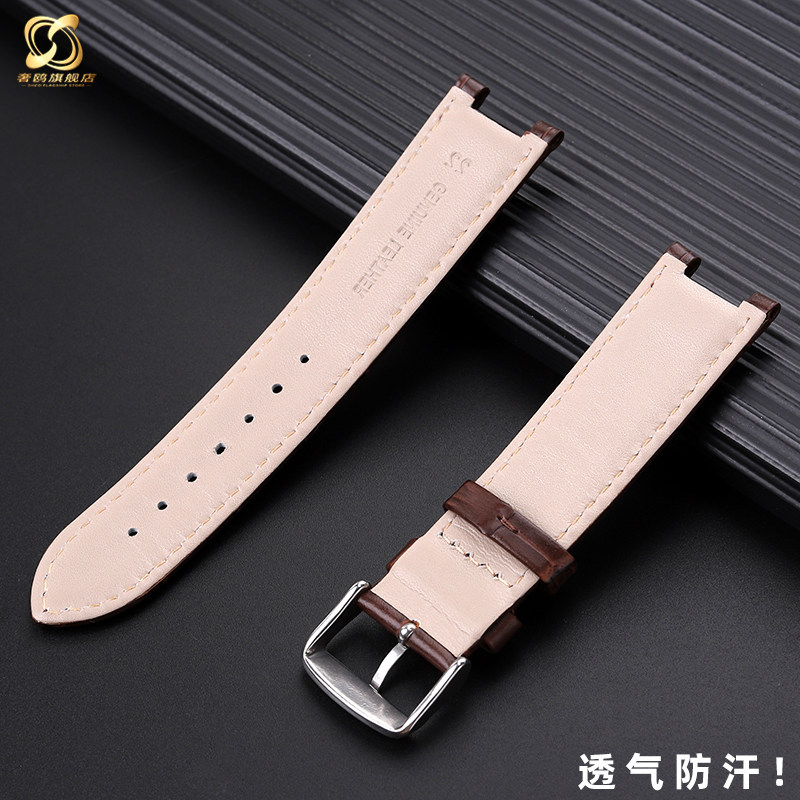 奢鸥真皮表带适用范思哲Versace系列手表配件黑棕色凹口牛皮表链