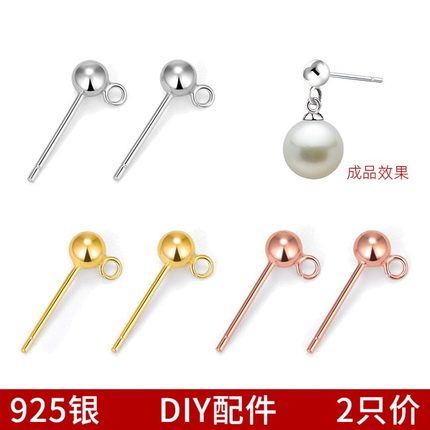 S925纯银耳钉百搭豆豆小圆球DIY手工饰品耳环配件带开口圈换耳夹