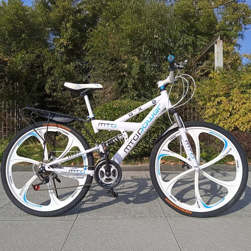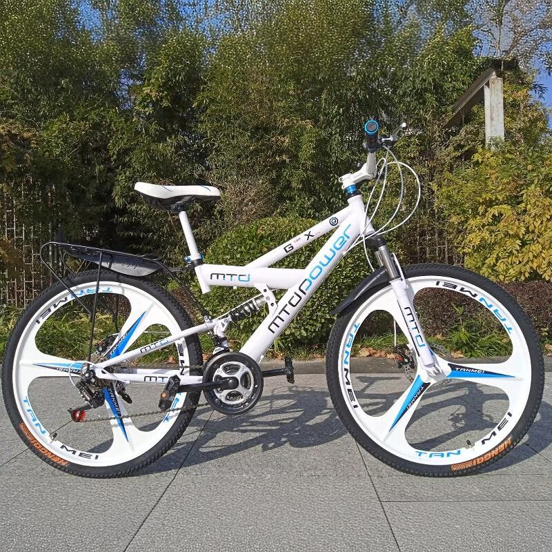 双减震山地自行车双碟刹带后座轻山地车变速男女单车学生越野赛车
