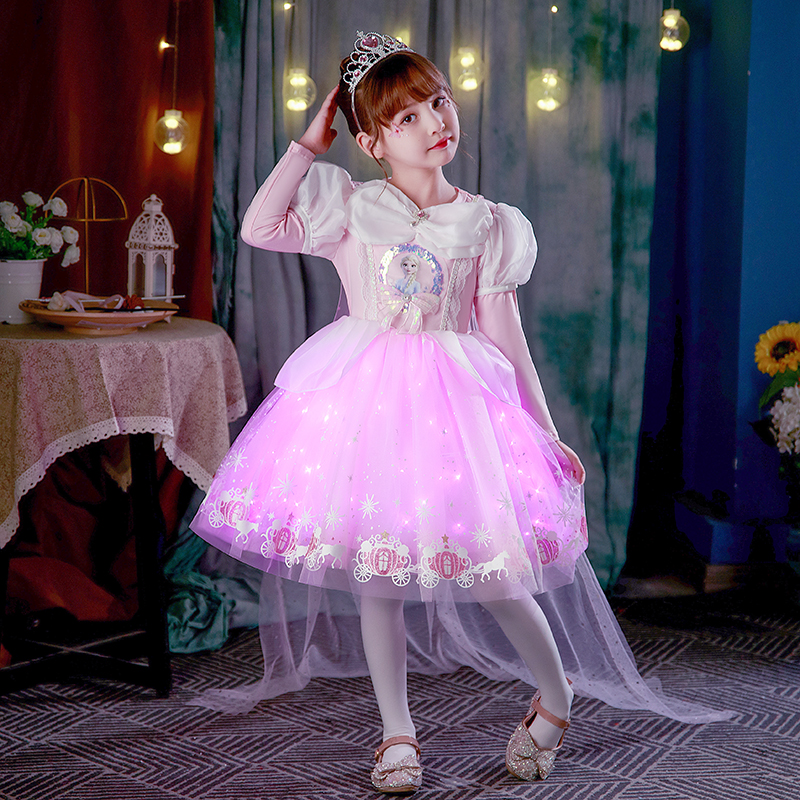 女童发光爱莎公主裙秋冬加绒连衣裙艾莎冰雪奇缘cos新款生日礼