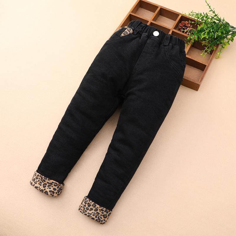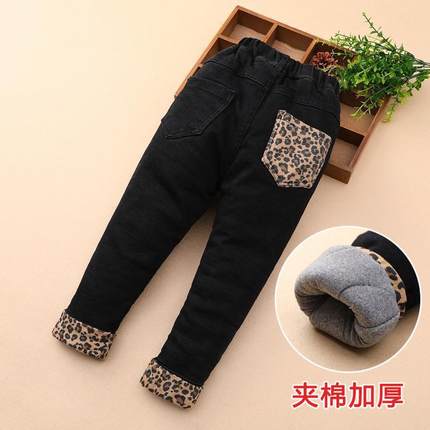 女童棉裤三层夹棉冬季黑色加厚宝宝保暖裤儿童裤子秋冬牛仔裤外穿