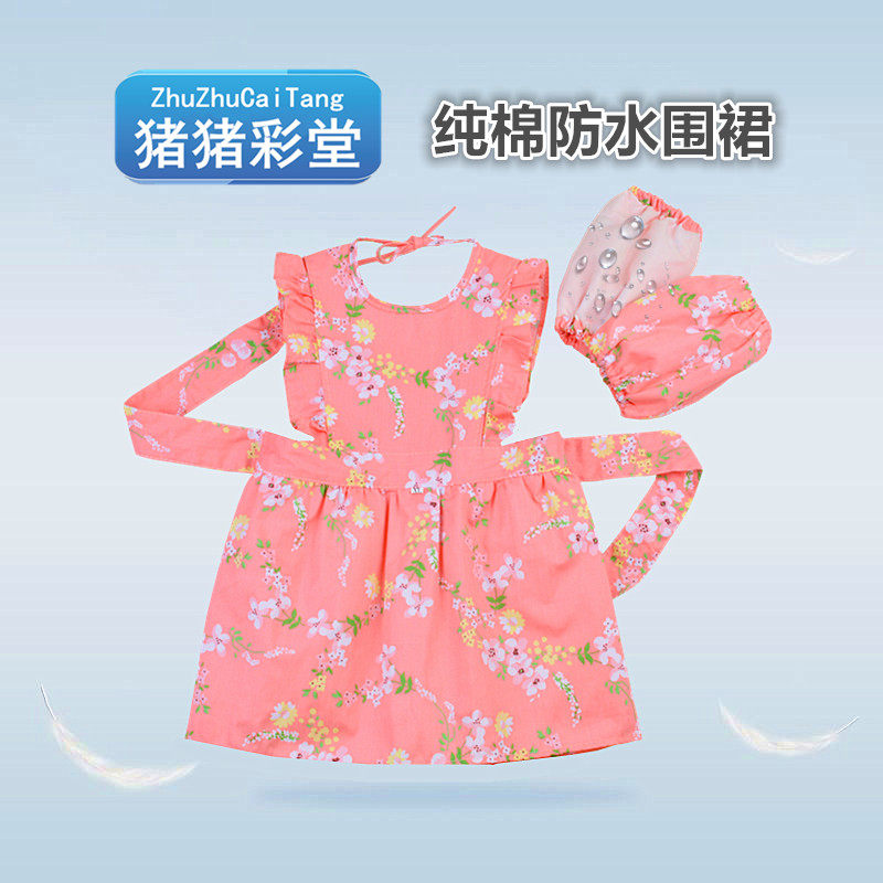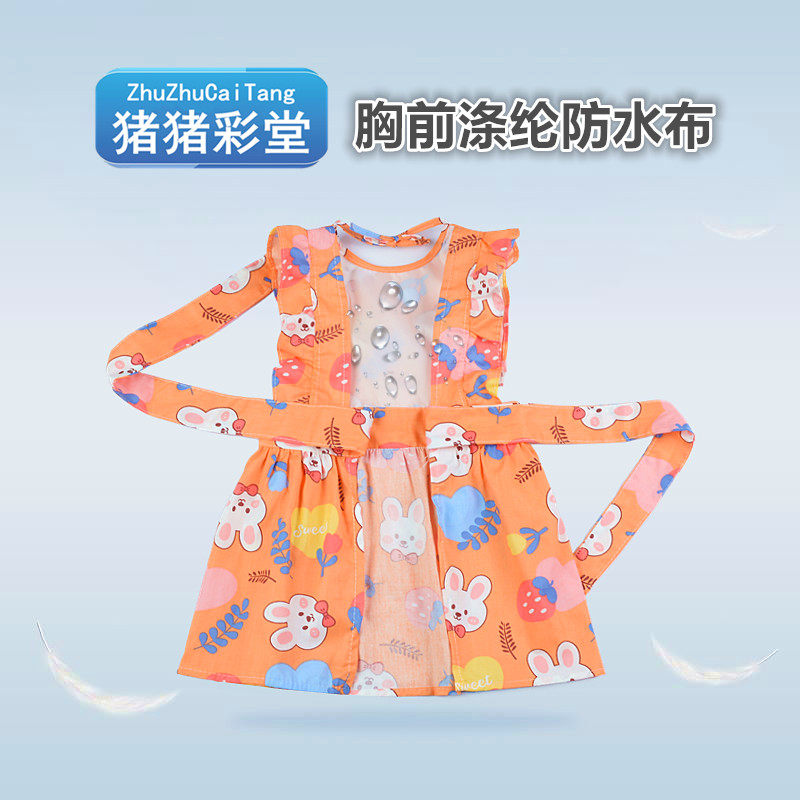 儿童围裙纯棉防水宝宝围兜罩衣婴儿无袖吃饭小孩背心式画画反穿衣