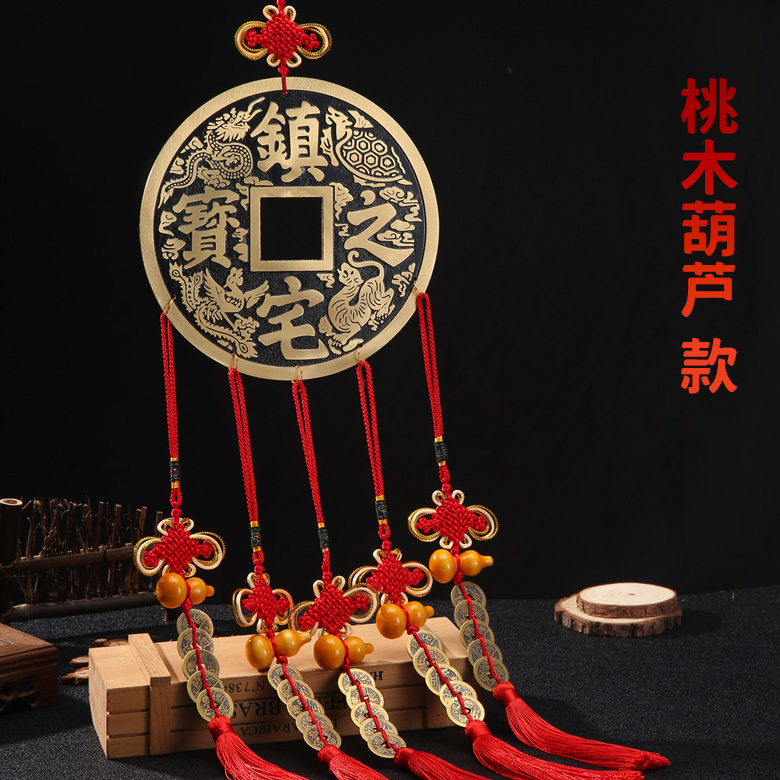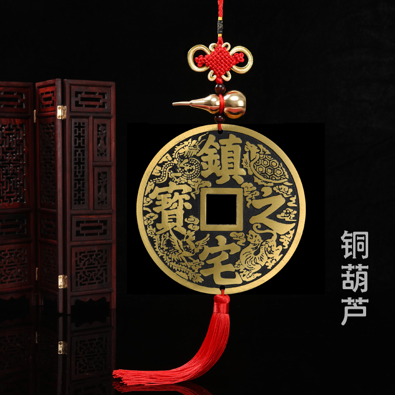 黄铜镇宅之宝大铜钱家居摆件客厅葫芦挂件纯铜工艺装饰品