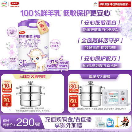 伊利金领冠悠滋小羊舒享3段12-36个月婴幼儿低敏羊奶粉700g*2罐