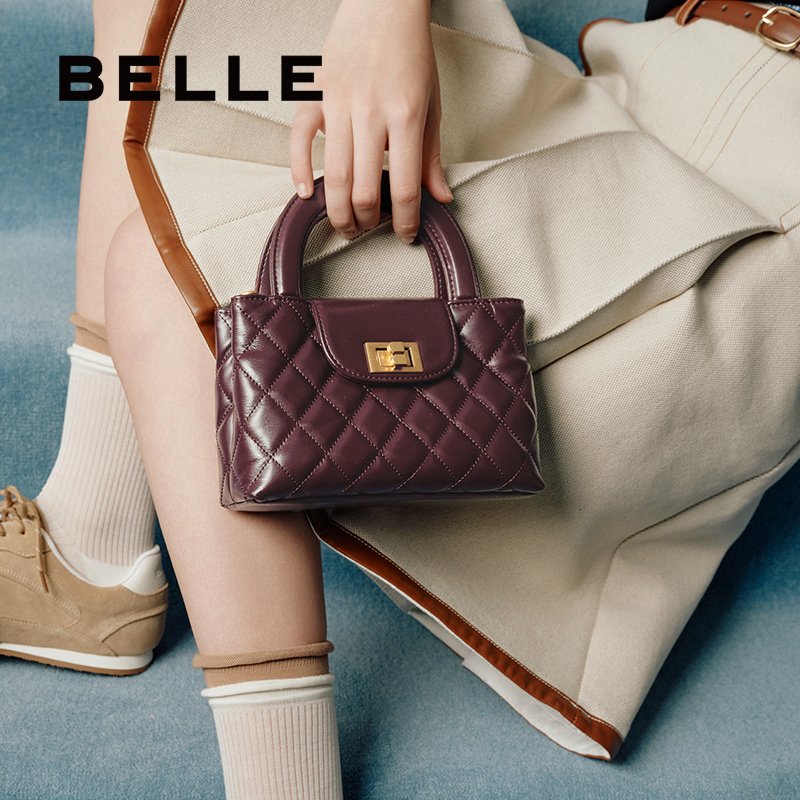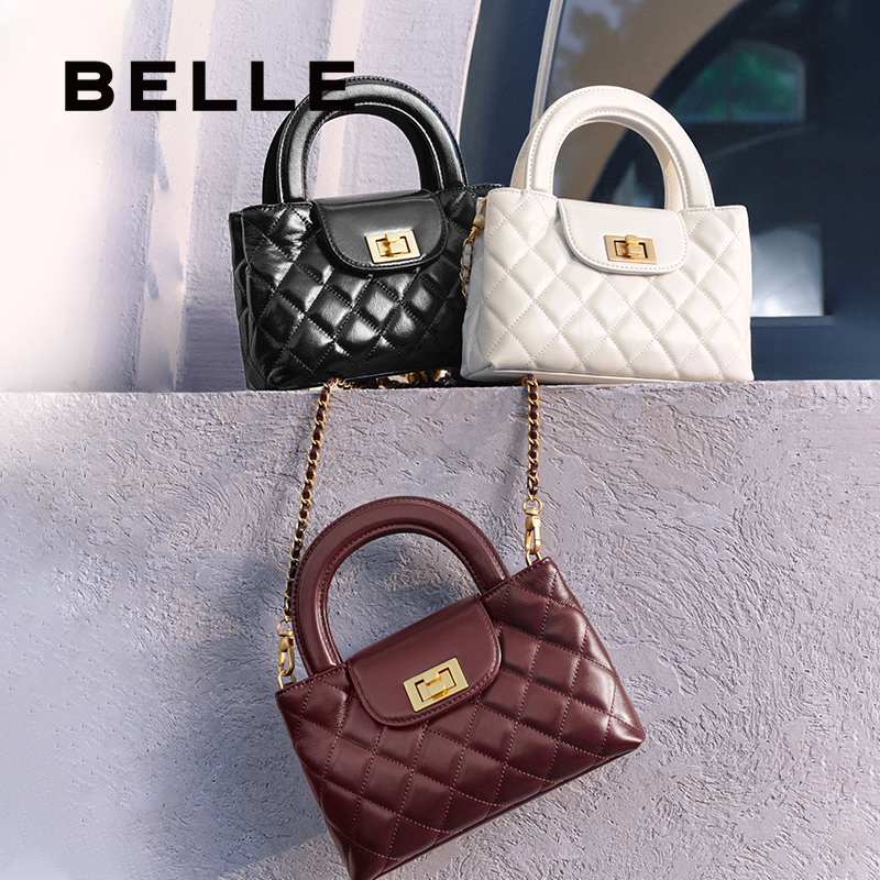 百丽包包女商场同款小香风手提包送妈妈红色新娘婚包小方包X7183A