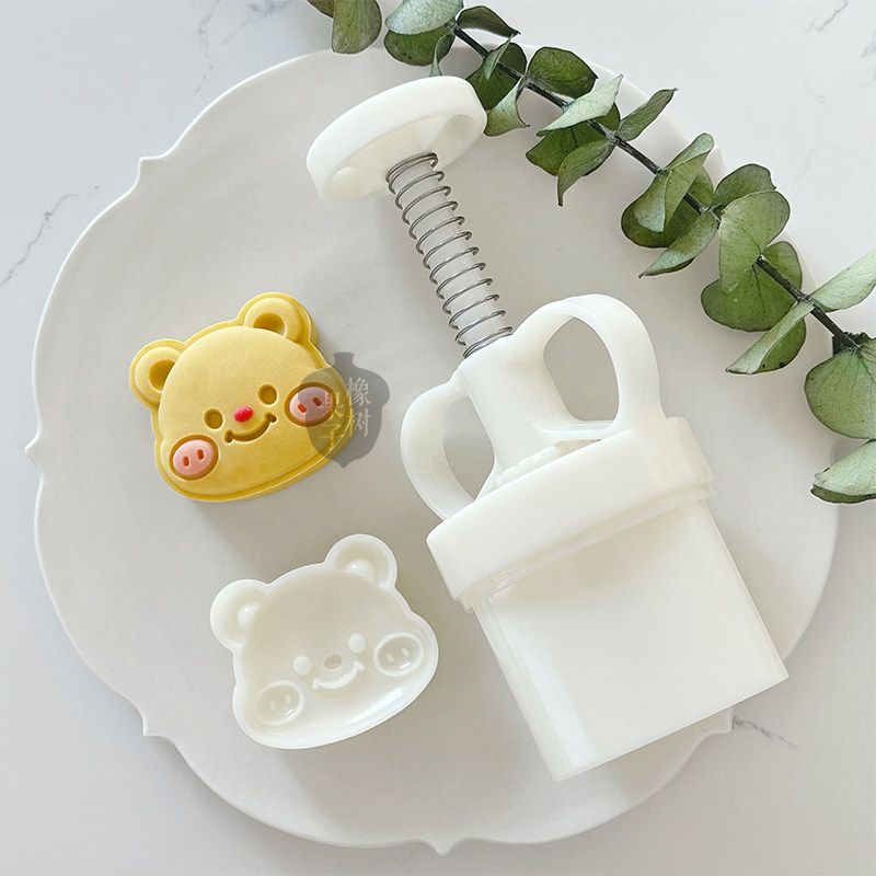 50克卡通小熊月饼模具新款小可爱家用绿豆糕点手压广式冰皮烘焙模