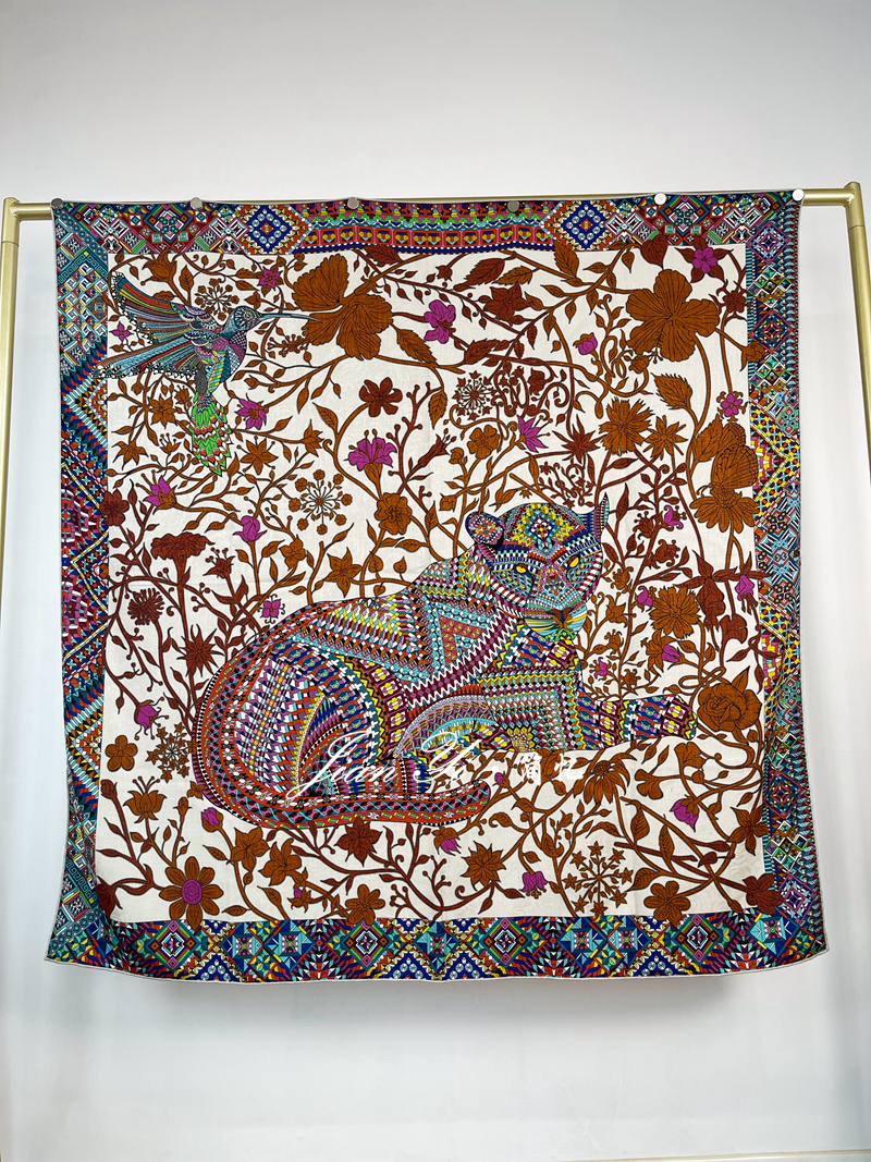 【美洲豹与蜂鸟】典雅贵气提花真丝羊毛130大方巾空调披肩围巾