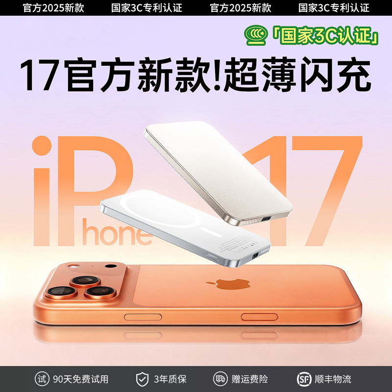 官方正品磁吸充电宝适用苹果16iPhone17Promax旗舰店原装无线MagSafe超薄小巧便携式飞机可携带迷你10000毫安