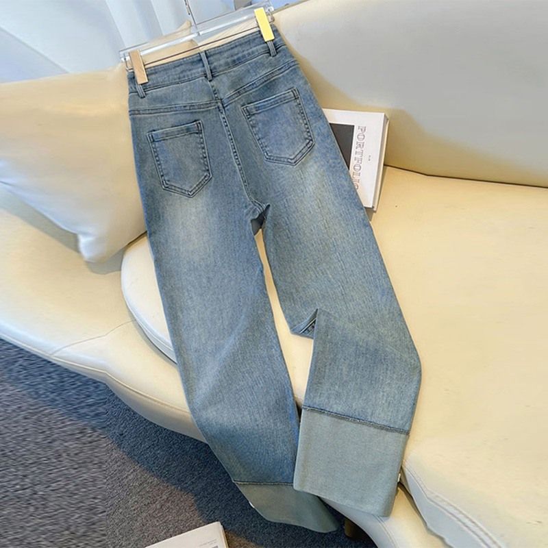 啄木鸟白色新中式刺绣九分直筒牛仔裤女士秋季高腰显瘦烟管裤子