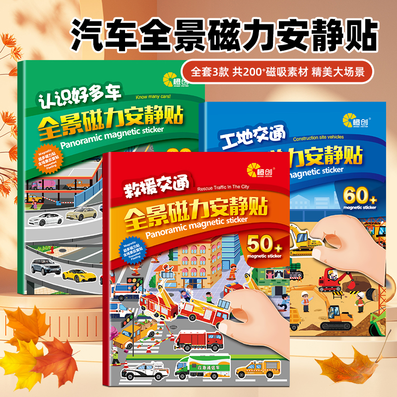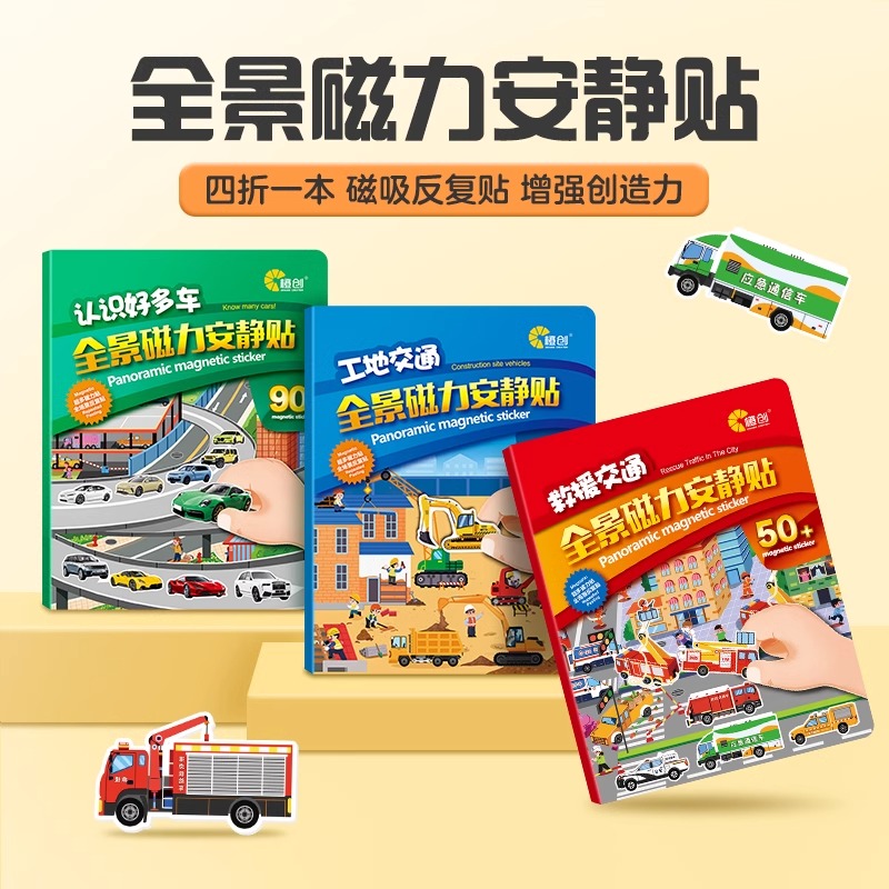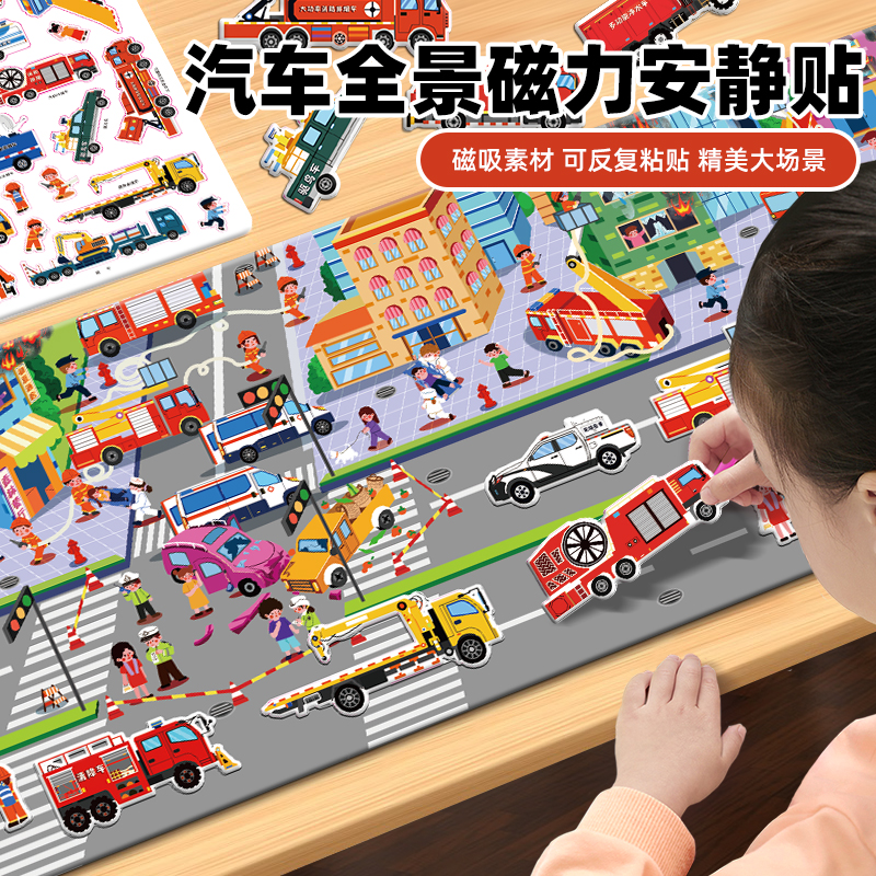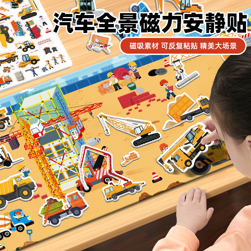 工程汽车磁力安静贴儿童3-6岁宝宝粘贴画贴纸书磁吸早教益智玩具