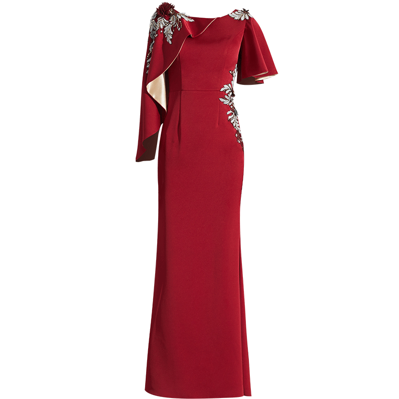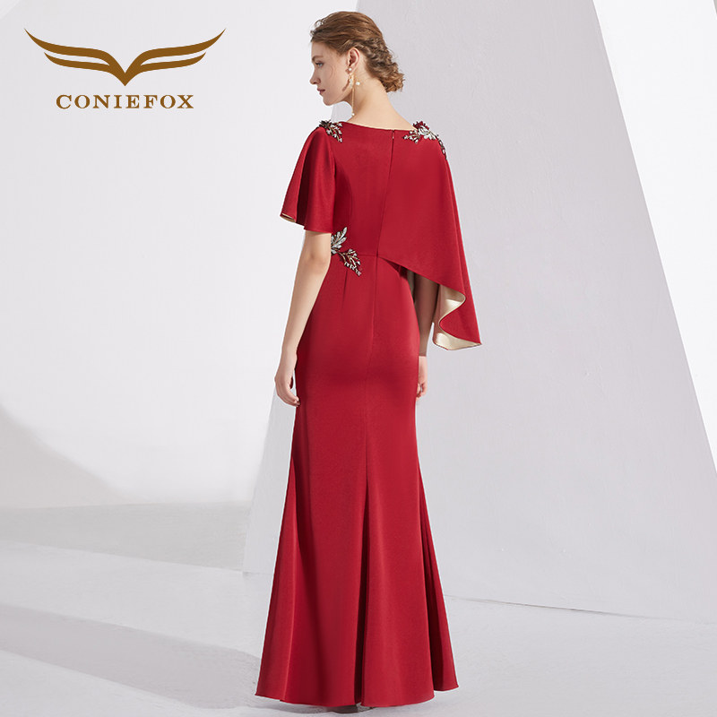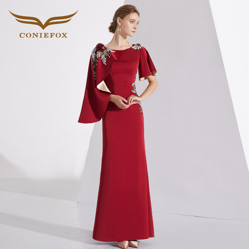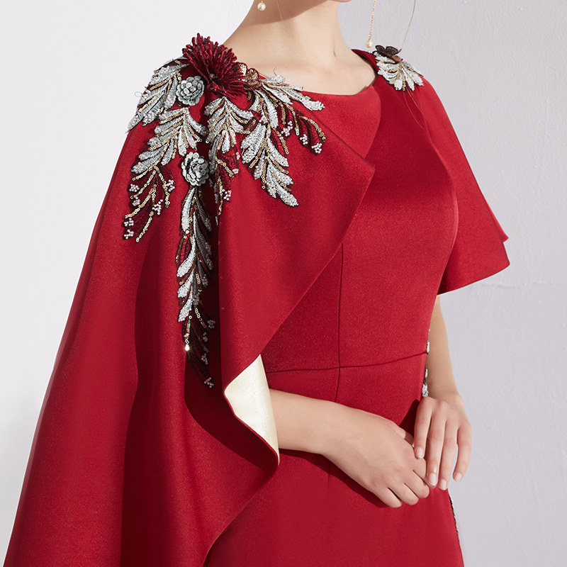 创意狐红色气质礼服女长款高端宴会主持人礼服裙气质晚礼服演出服