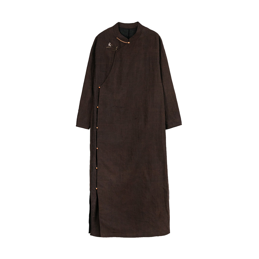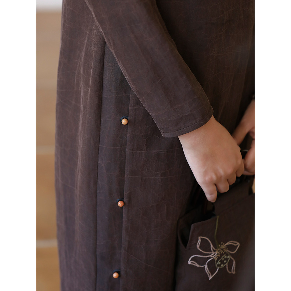 布小匠原创设计秋新款桑蚕丝龟裂纹香云纱旗袍裙中长款真丝连衣裙